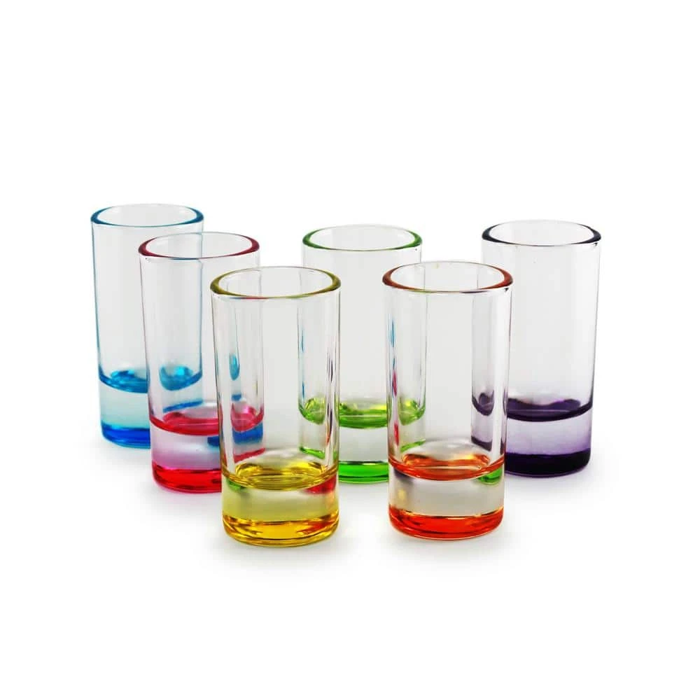 Now you can serve up different fun party liquors to your most important guests. with these Set of 6 assorted color shot glasses 1.2oz.A fine addition to any at-home bar collection, these shot glasses are a fantastic conversation starter.It gives you and your drinking mates a great way to partake of your favorite liquor shots.This can be tequila, whiskey, or even fruity cocktail blends.Additionally, they make for an unforgettable housewarming gift to cheer up your friend, guest or a business colleague.