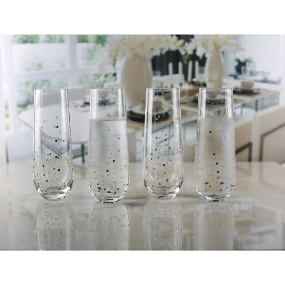 Celebrate any special occasion with a dose of glitz and glamour using the Stemless Flute with Gold Confetti Decal Glass Set of 2 10.5oz collection. Garnished with confetti accents on glass. This drinkware is sure to make a statement in your barware or Home.