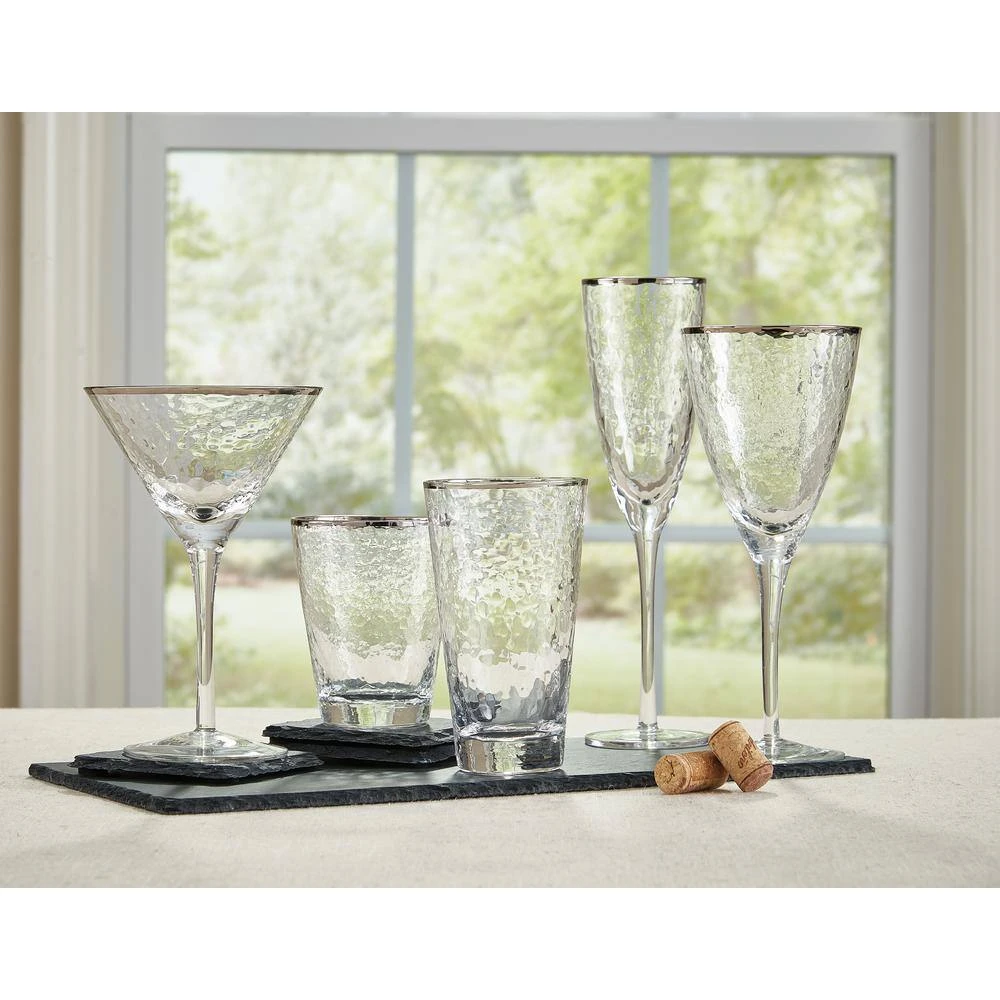 10 oz. Metallic Silver Rim Highball Glasses (Set of 4) by Split P
