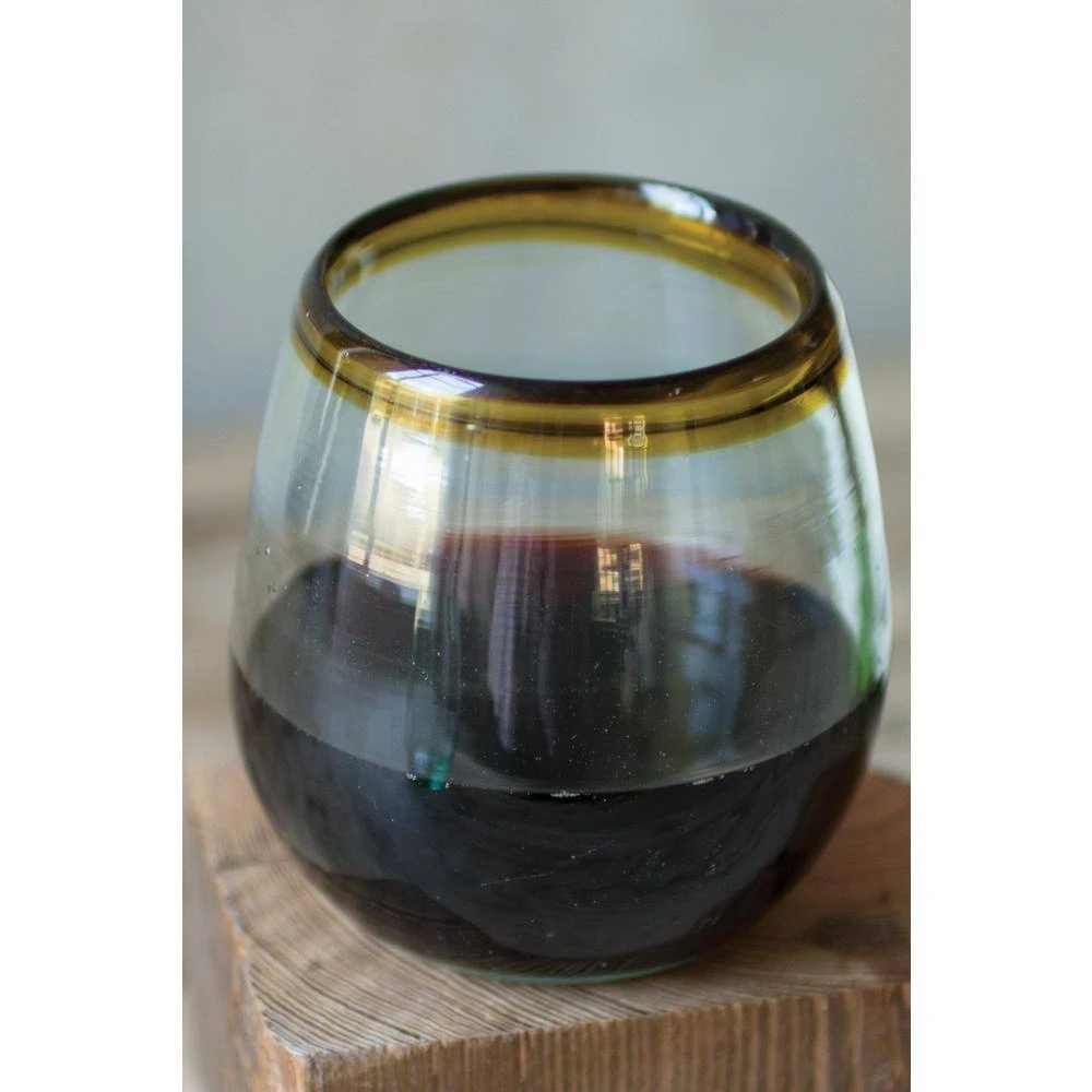 18 oz. Clear Stemless Wine Glass with Amber Rim (Set of 6) – Elegant and Durable