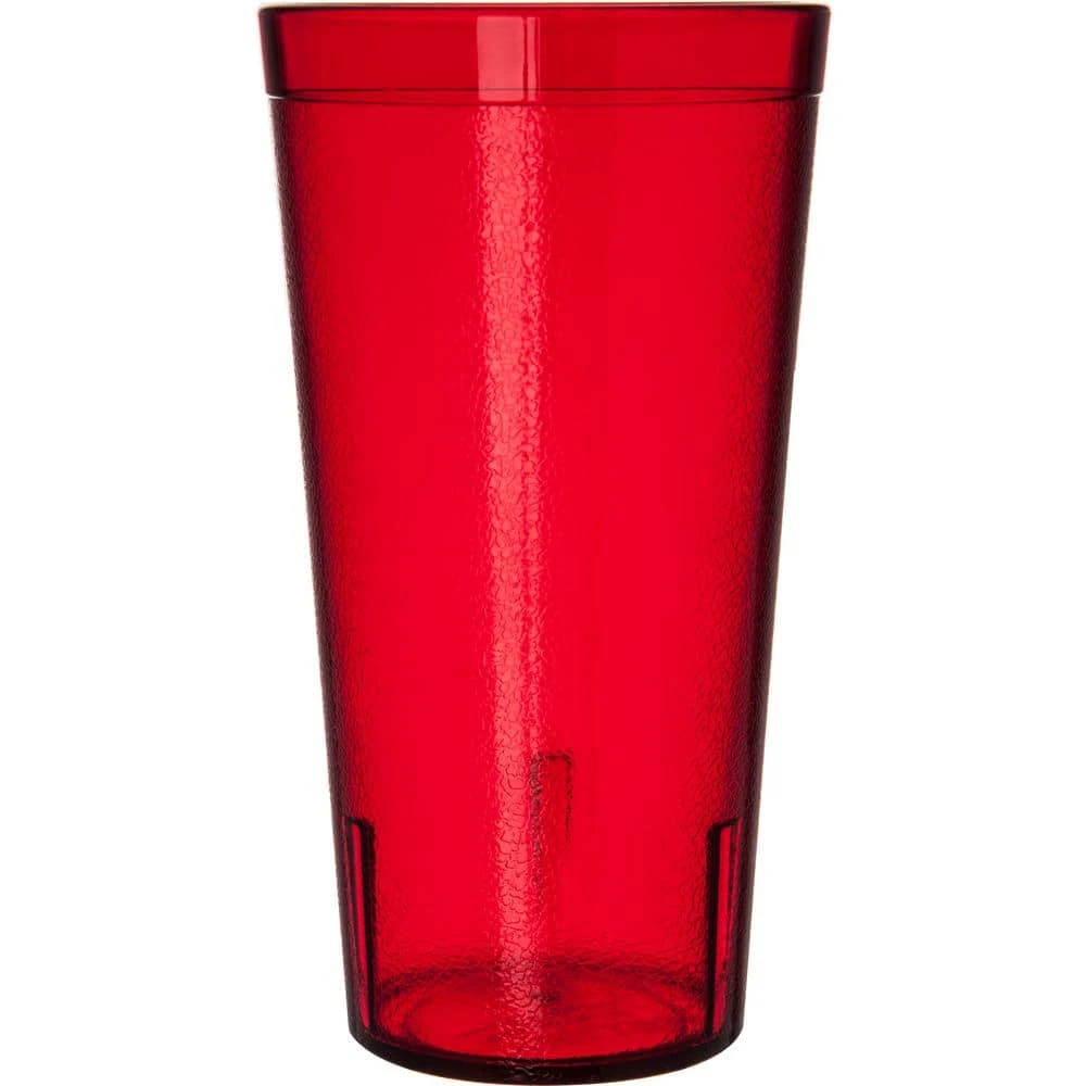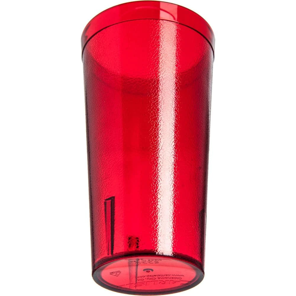 - This 20 oz. SAN Plastic Stackable Tumbler by Carlisle features a vibrant ruby color, perfect for adding a pop of brightness to any dining or beverage setup.