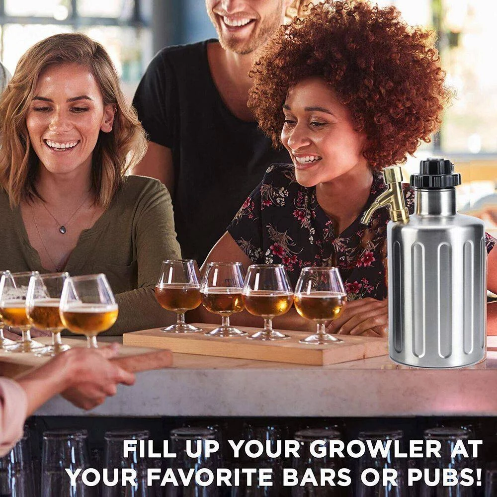 A traditional growler will let beer go flat after the first pour. It will keep beer vacuum pressured and fresh for up to 2 months. Perfect for any homebrew or craft draught beer kegging equipment enthusiast