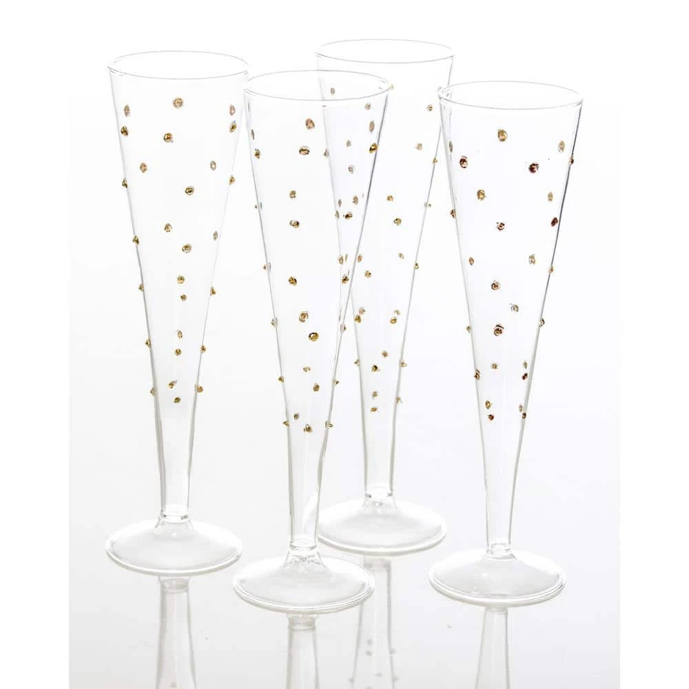 Abigails Gatsby Flutes with Gold Dots – Elegant Champagne Glasses Set of 4