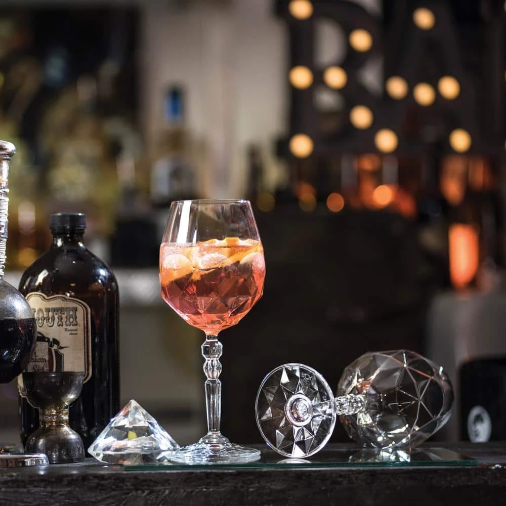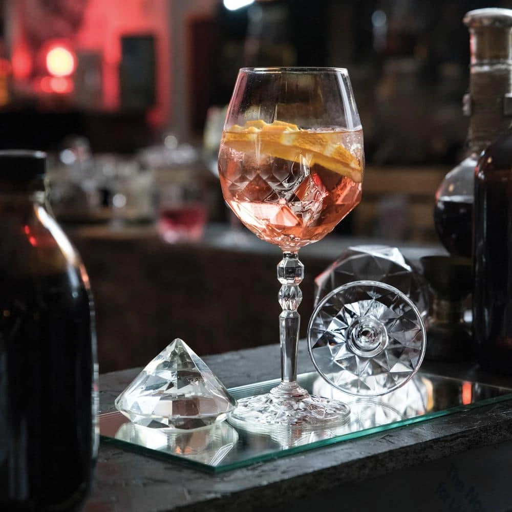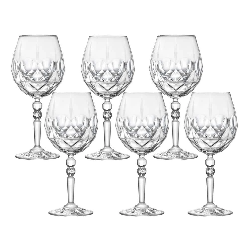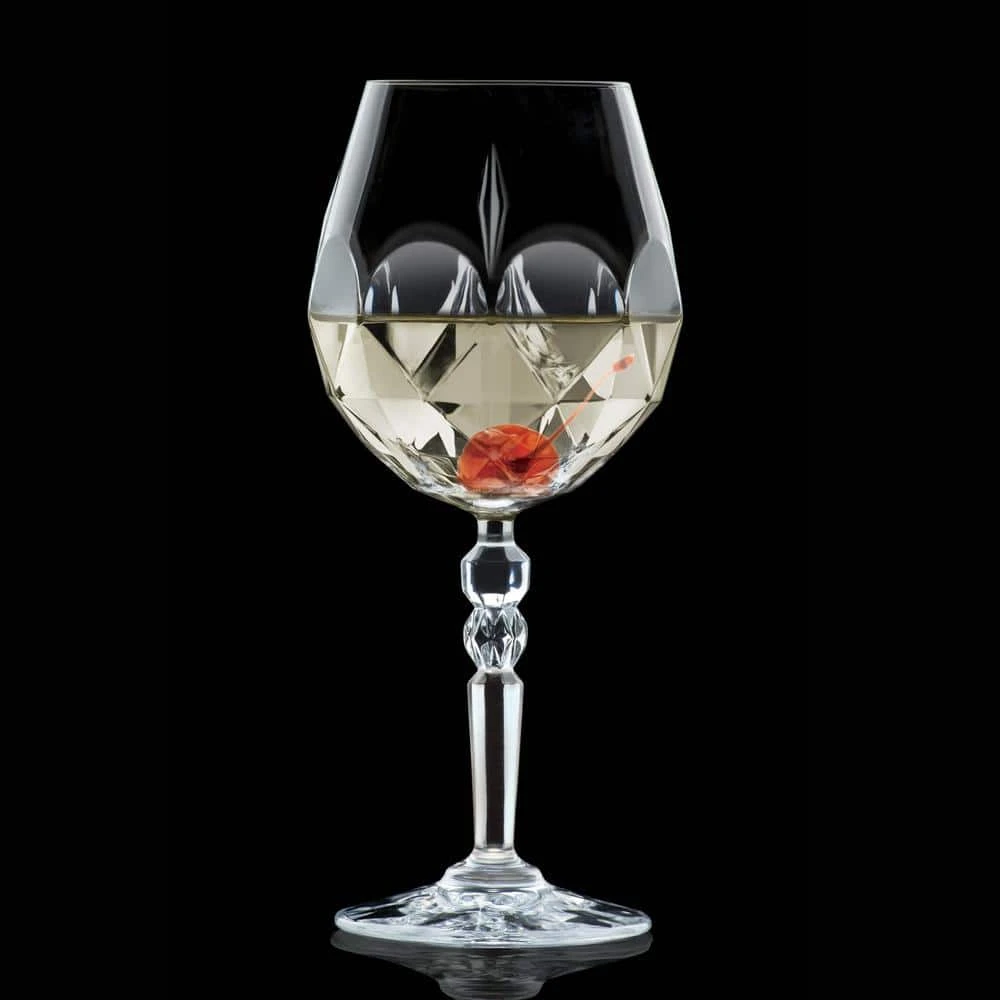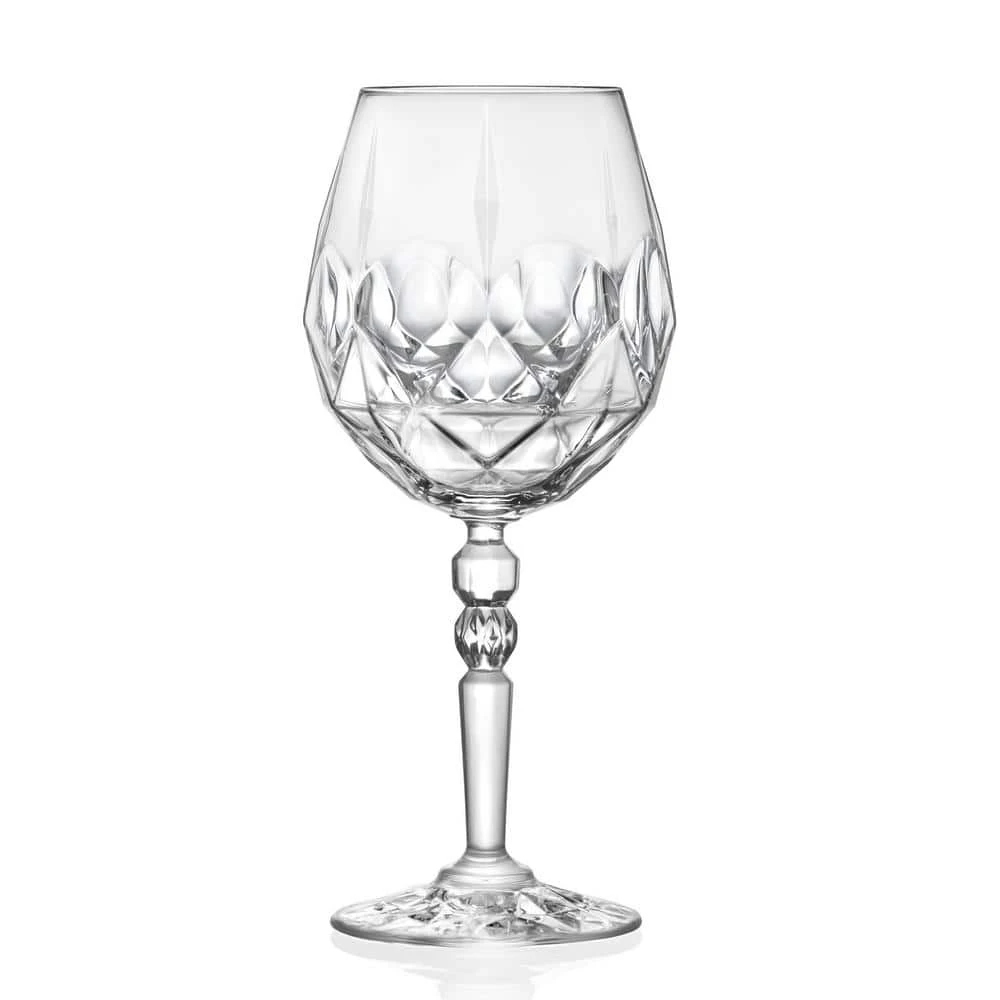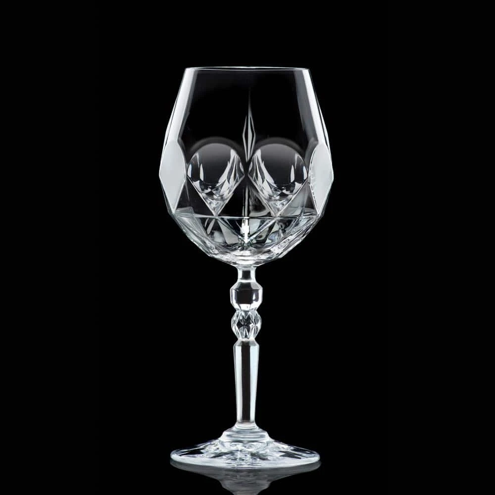 Alkemist Collection features a unique and trendy cut crystal design. This elegant design will showcase your drinks in a fashion forward and fun way. Made in the Tuscon region of Italy with the highest standard of quality and attention to detail. This set of 6-Goblet set can by used as for red or white wine as well any classis spirited drinks. Measures 3.75 in. x 3.75 in. x 9 in. and holds 16 oz. of your favorite beverage.