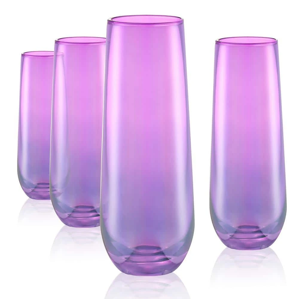 Artland 9 oz. Stemless Champagne Flutes in Purple (Set of 4) – Elegant Wine Glasses