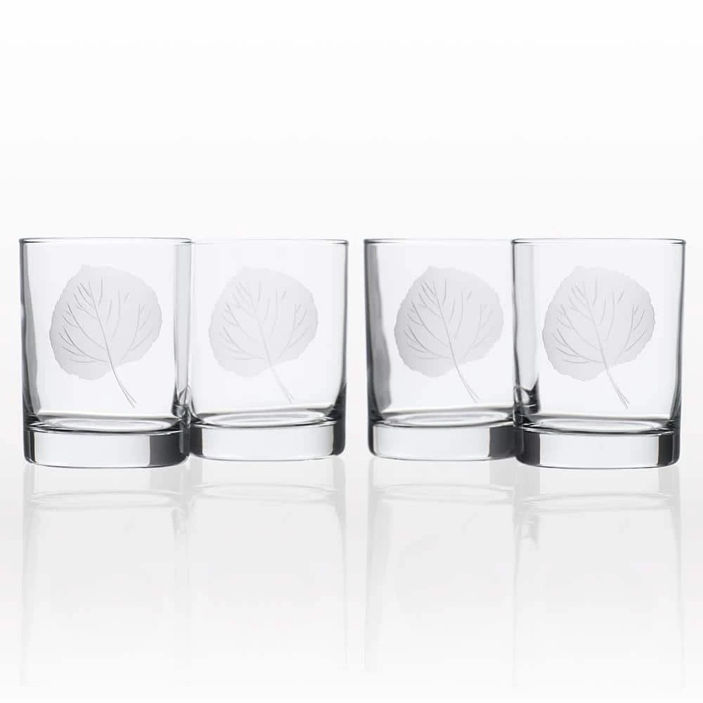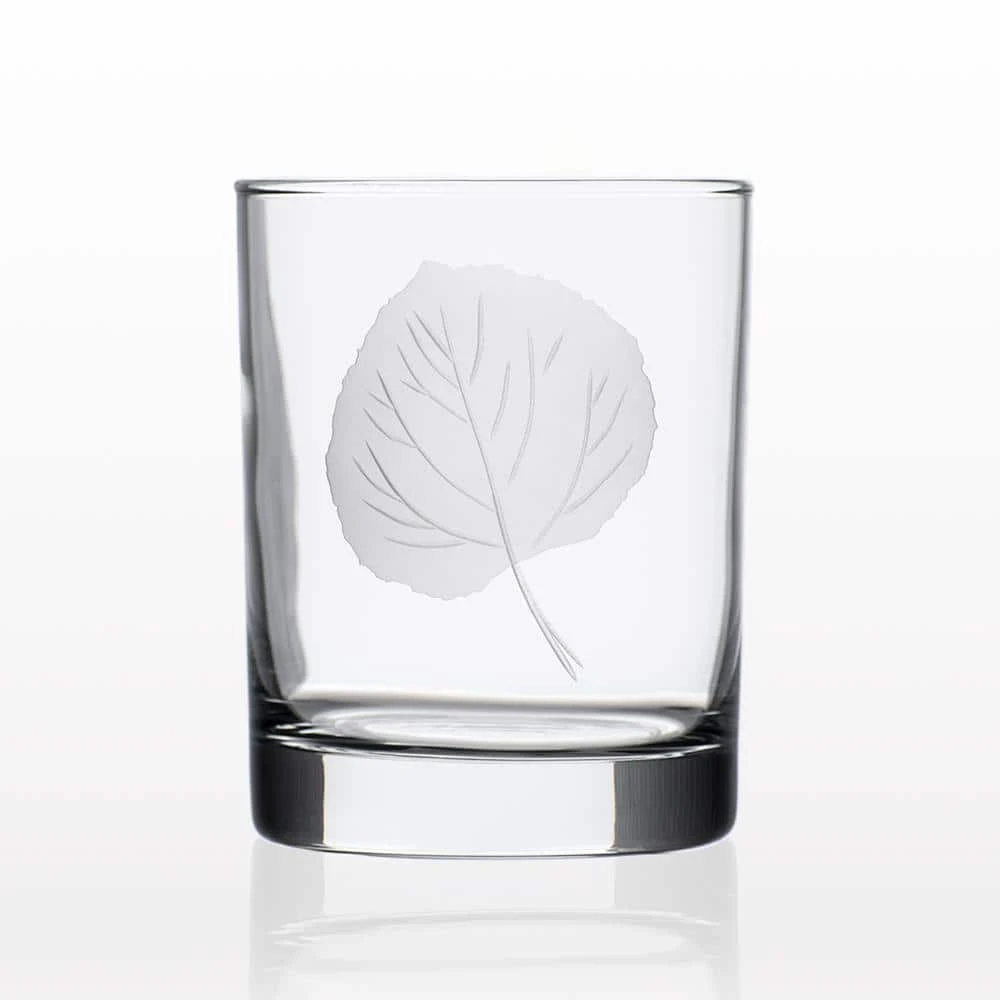 Bring the iconic symbol of the great outdoors into your heart and home with this beautifully engraved Aspen leaf glassware collection. Deep cuts make the stem and veins while a light sand-etch overlays the cut, making for a truly unique design. Makes a wonderful addition to your home glassware collection.
