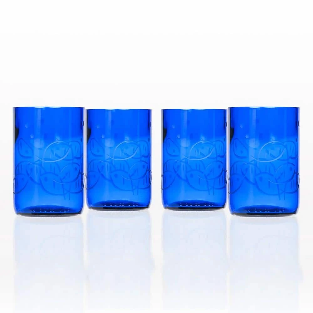 Blue Fish 14 oz. Repurposed Blue Glass Tumbler Set of 4 | Eco-Friendly Drinking Glasses