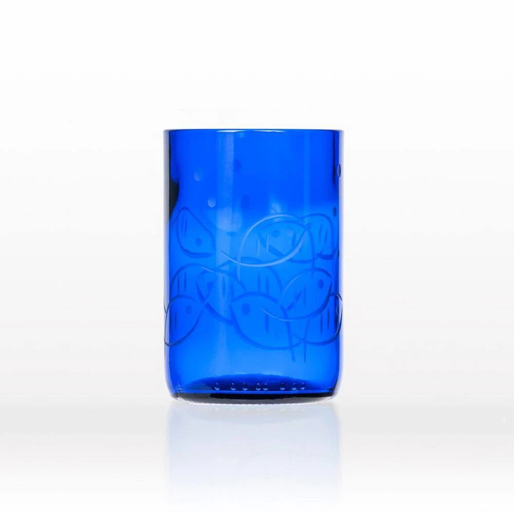 - Crafted with care, the Blue Fish 14 oz. Repurposed Blue Glass Tumbler Set by Rolf Glass combines sustainability with elegance. Each tumbler is made from repurposed glass, making it an eco-conscious choice for your home.