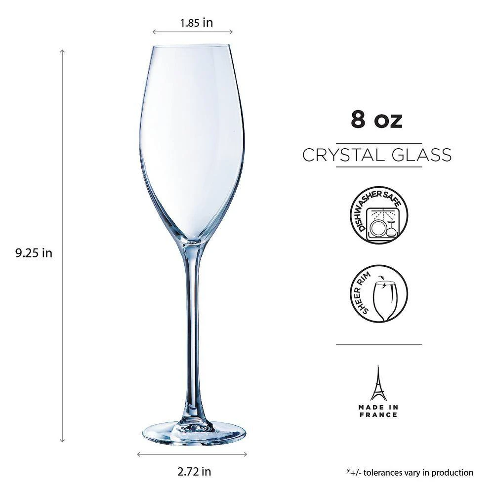 Chef&Sommelier Bellevue 8 oz. Champagne Flute Set of 6 – Elegant Wine Glasses for Celebrations