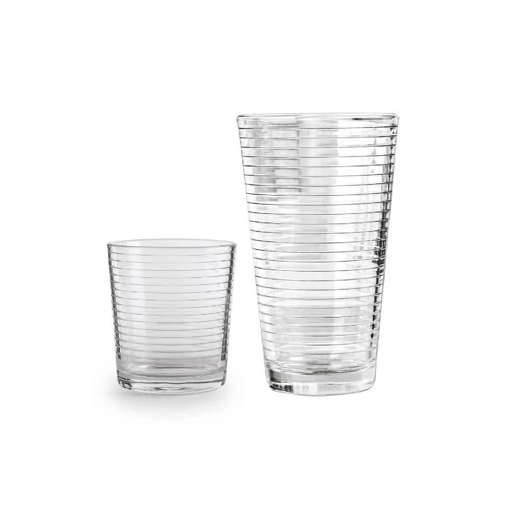 - 16-piece glassware set, 8-hi-ball 15.75 oz. and 8-dof 12.5 oz. glasses, clear