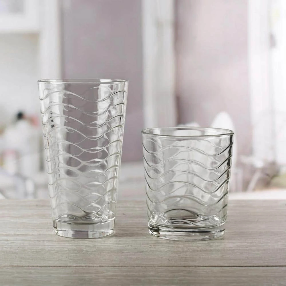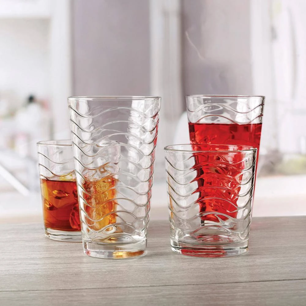 Add a splash of sophistication to your dinner table with the sleek, stylish 16-Piece Glassware Set. These modern drinkware glasses feature exquisite clarity, perfect for formal entertainment while also being the glassware of choice for casual dining at parties, weddings and other ceremonies. The Drinkware Glassware Drinking Glasses are guaranteed to feel good in your hand and add a finishing touch that makes your drinks and cocktails look good, too.