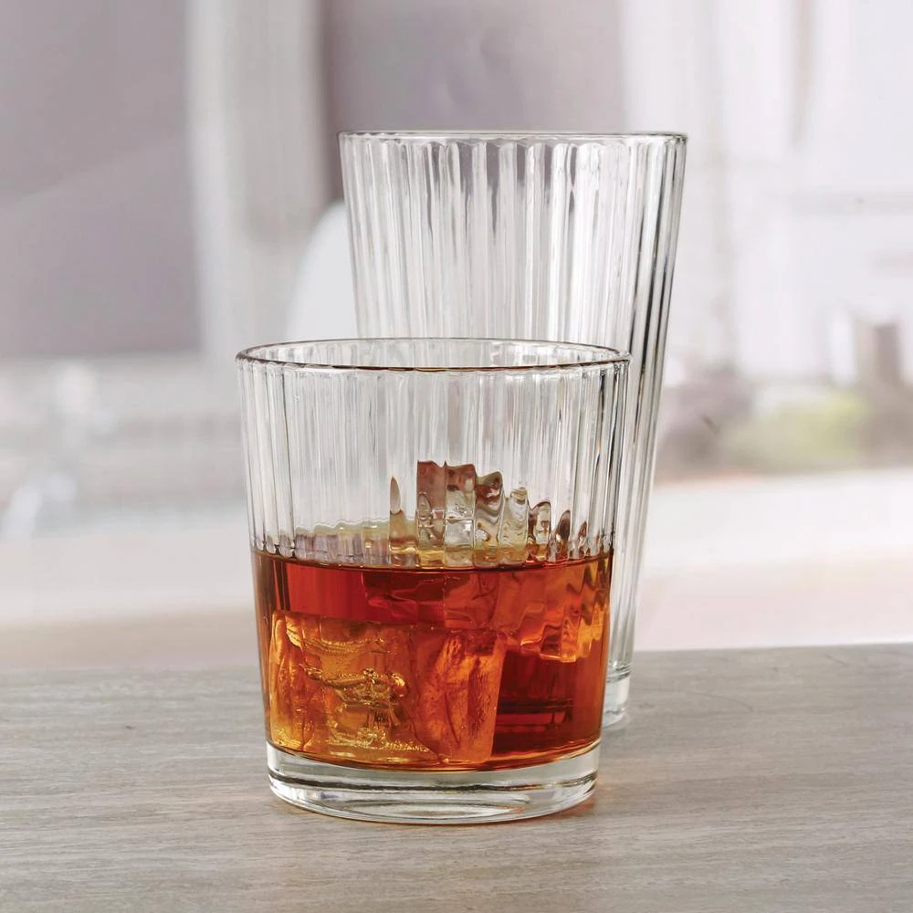 - 16-piece glassware set, 6-hi-ball 15.75 oz., and 6-dof 12.5 oz., glasses, clear