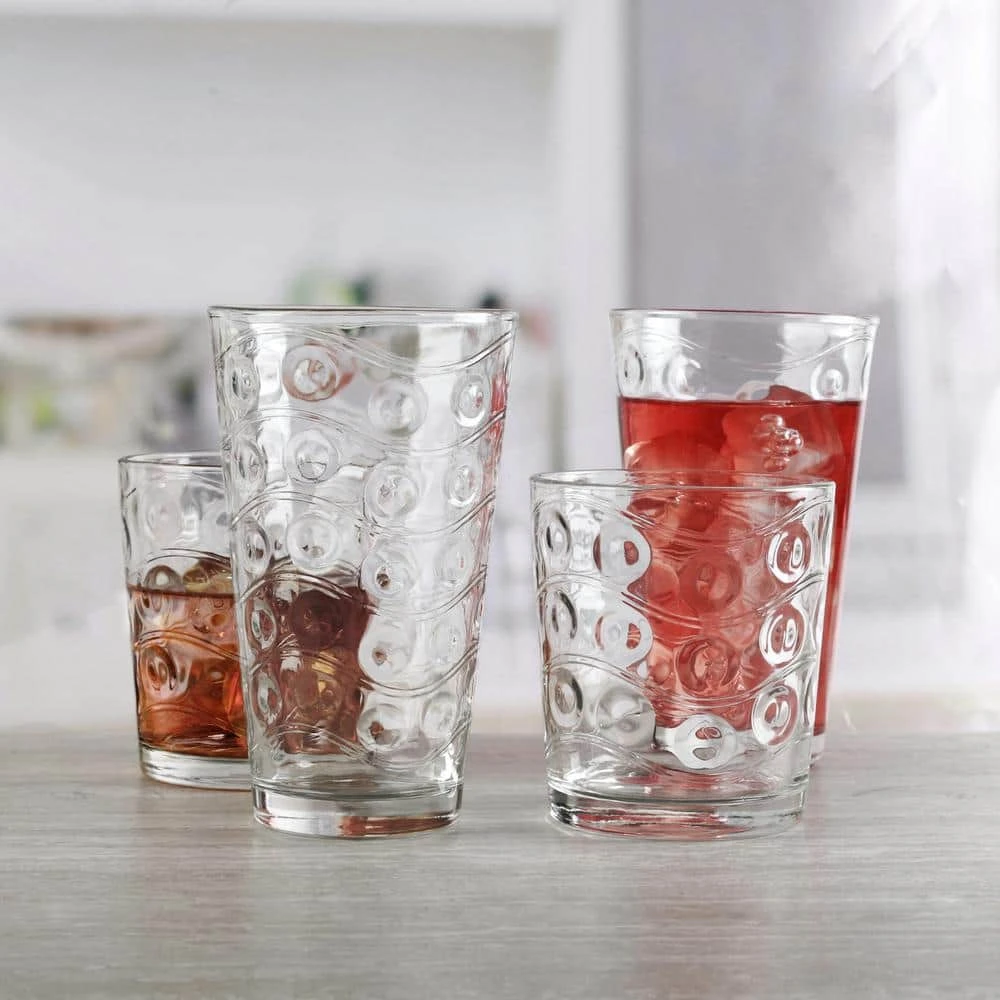 Add a splash of sophistication to your dinner table with the sleek, stylish 12-Piece Glassware Set.These drinkware drinking Glasses are guaranteed to feel good in your hand and add a finishing touch that makes your drinks and cocktails look good, too.These modern drinkware glasses feature exquisite clarity, perfect for formal entertainment while also being the glassware of choice for casual dining at parties, weddings and other ceremonies.
