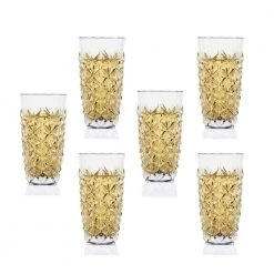 Lorren Home Trends 10 oz. Gold Amber Highball Glass Set of 6 – Elegant Cocktail Glasses