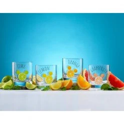 JoyJolt Disney Mickey Mouse Citrus Short Drinking Glass Set of 4 – 10 oz. Cocktail & Whiskey Glasses