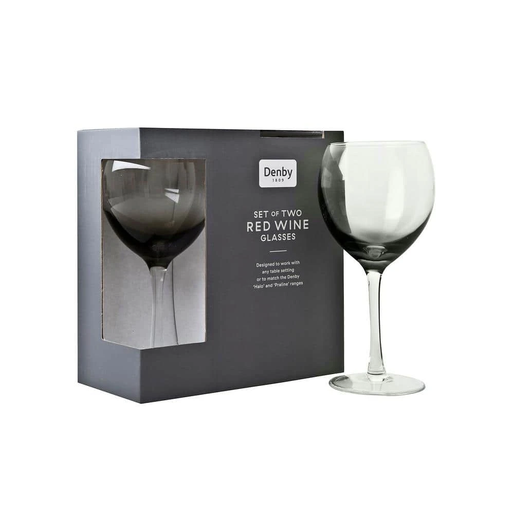 - Experience the perfect pour with Denby’s Halo 16.9 oz. Red Wine Glasses. Each set includes two elegantly designed glasses, ideal for enhancing the aroma and flavor of your favorite red wines.
