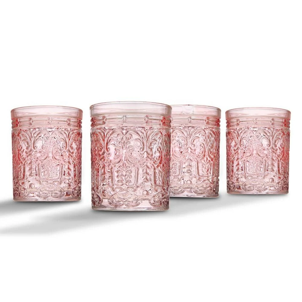 Godinger Jax 11 oz. Pink Crystal Doff Glasses (Set of 4) – Elegant Cocktail Glasses
