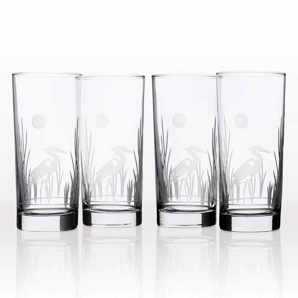 Long revered as the symbol of prosperity, a single Heron gracefully adorns a picturesque landscape. This bestselling Rolf Glass is deeply sand-etched and diamond-wheel engraved. Pristine clear glass and elegant lines make this design an instant classic. Sold in sets of four they also make fantastic gifts.