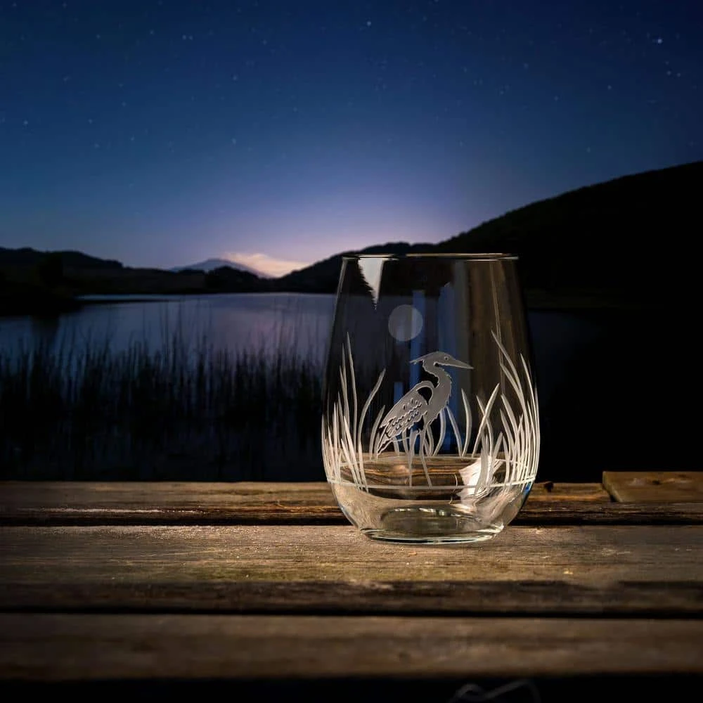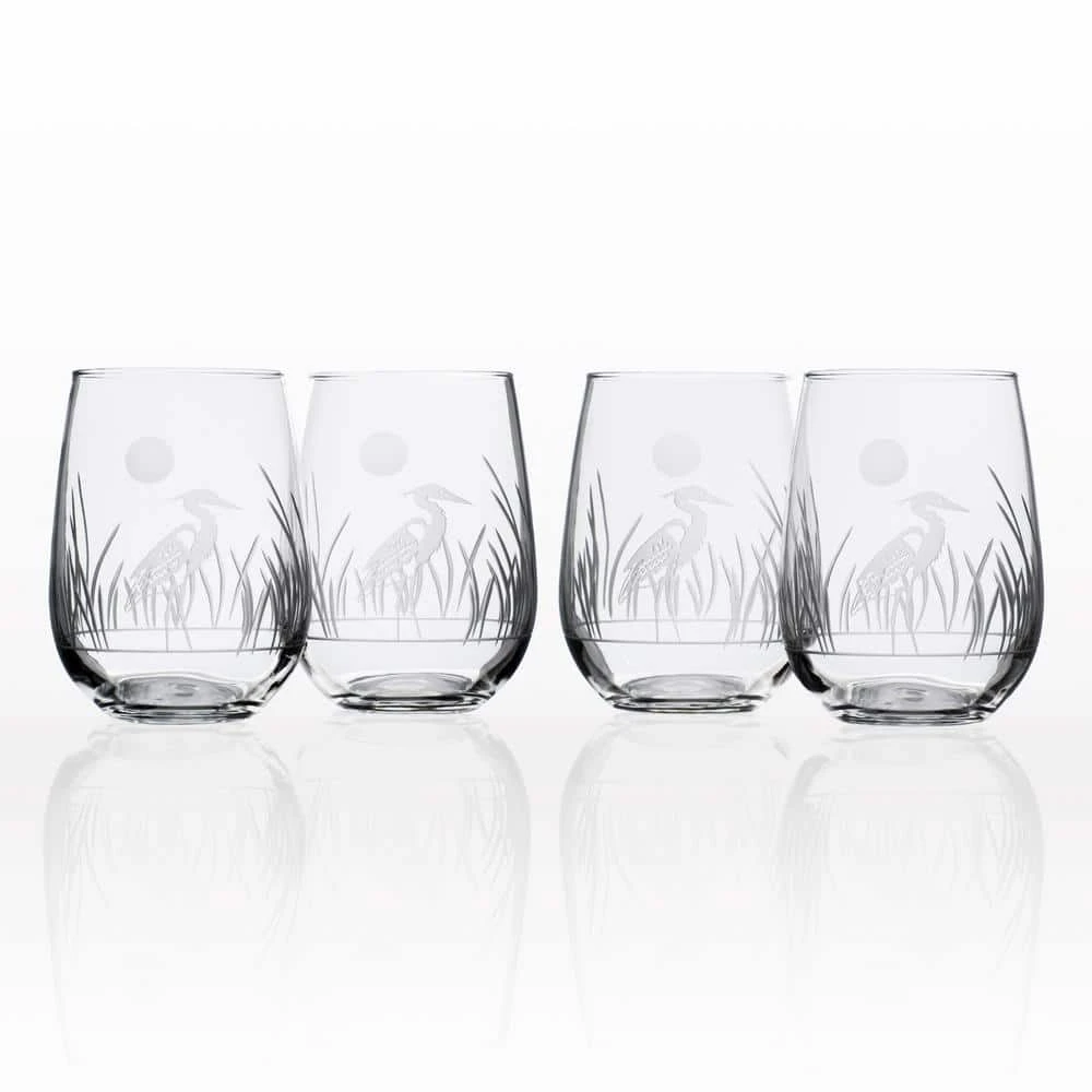 Long revered as the symbol of prosperity, a single Heron gracefully adorns a picturesque landscape. This bestselling Rolf Glass design is deeply sand-etched and diamond-wheel engraved. Pristine clear glass and elegant lines make this design an instant classic. Sold in sets of four they also make fantastic gifts.