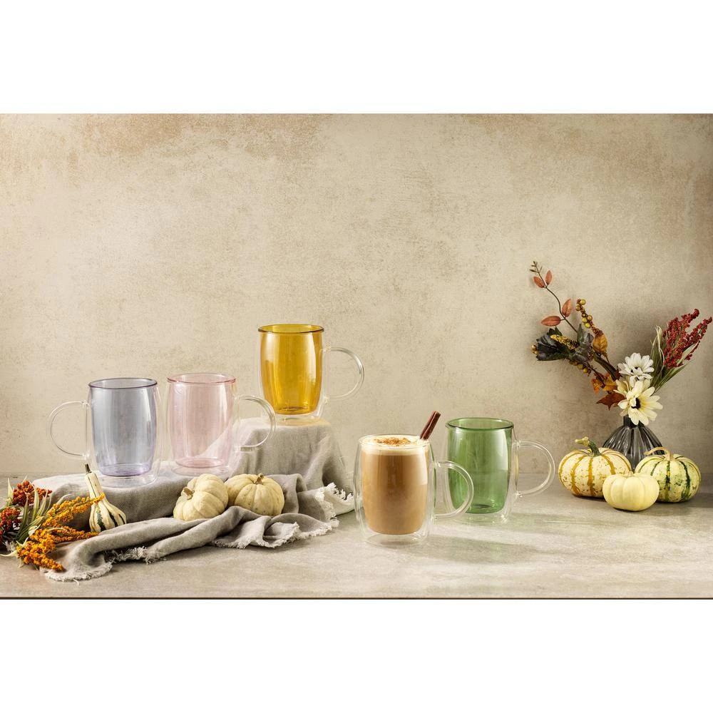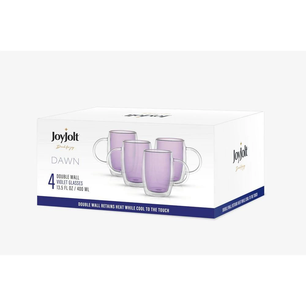 Enjoy Your Favorite Drink Like Never Before With The JoyJolt Aroma Colored Double wall Glass Cups. The Aroma Double Wall Glasses perfectly suited for a multitude of hot and cold beverages as well as desserts. Handmade of heat-resistant borosilicate glasses these vessels insure that their contents will remain hot for a longer period of time while the glass itself remains cool to the touch. They are dishwasher and microwave safe. The coffee and for tea mugs come as a set of 4 and hold 400ml (13.5 oz.) The Perfect Gift Idea. If you are looking for a unique present idea for friends and family, this is definitely for you. This set of 4 colored mugs comes in an elegant cardboard matte gift box, it makes an ideal for a housewarming, Holiday present for anyone.