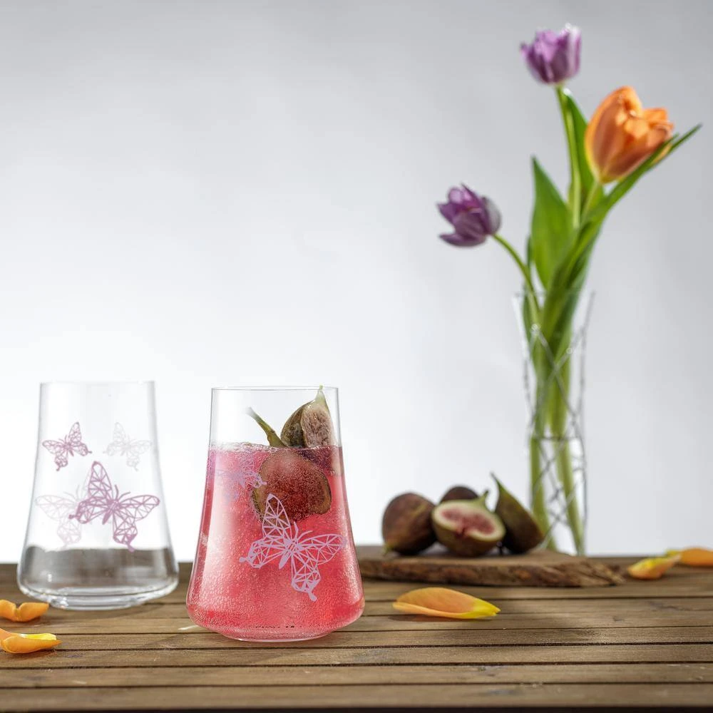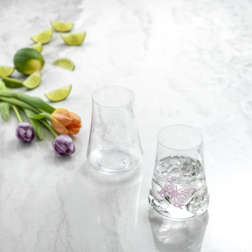 The JoyJolt Meadow Butterfly glasses selection was created to bring a feminine, upscale touch to your drinkware collection while offering you a unique experience with every sip. We are careful to work only with premium quality materials and original designs to create a unique glassware collection that will impress with the superb aesthetics, durability and finesse. Should you not be entirely pleased with your purchase, our customer care department is at your disposal and will address any issues or concerns. Our red wine glasses are a must-have in the collection of every wine lover or connoisseur, having such beautiful aesthetics and unique patterns. Made with care using premium crystal, these tall wine glasses features an ergonomic design that ensures a comfortable hand feel and superior durability so you can enjoy them for years to come. What makes the JoyJolt red wine glasses set of 2 truly one-of-a-kind is the superb pink butterfly design, inspired by their grace and elegance to offer you a unique feeling with every sip.