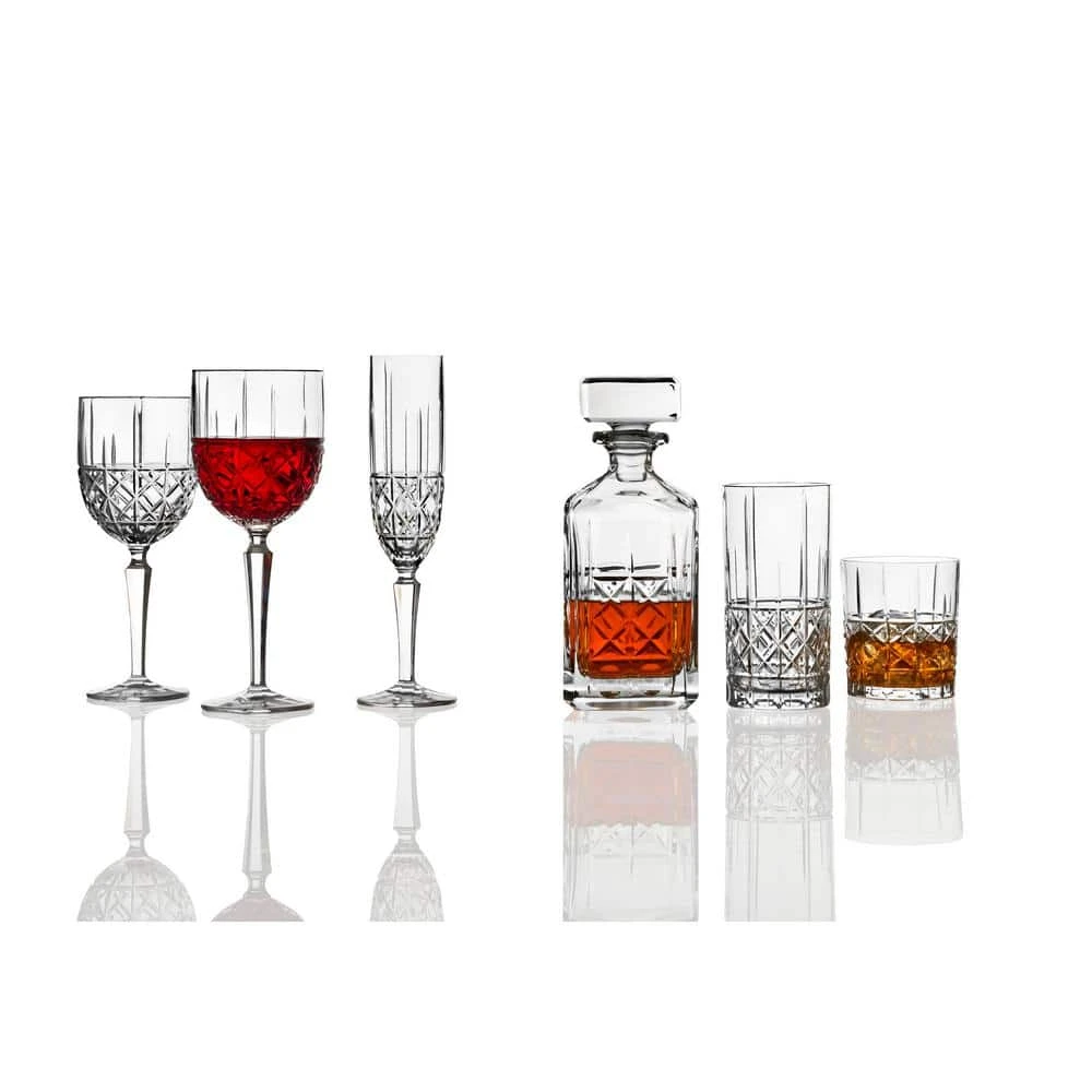 - The set includes four matching glasses, designed to elevate your drinking experience and impress your guests with their clear, sparkling clarity and refined design.
