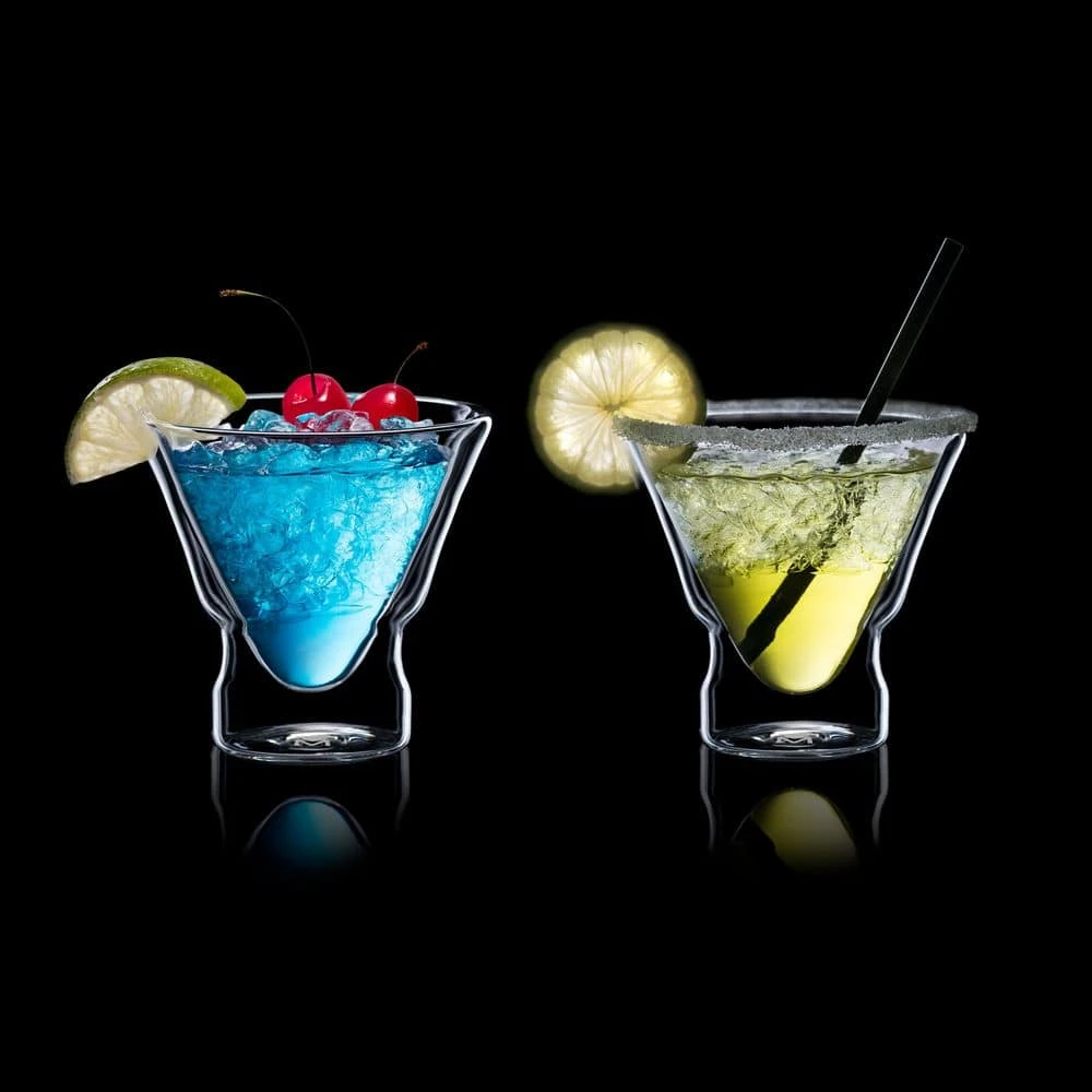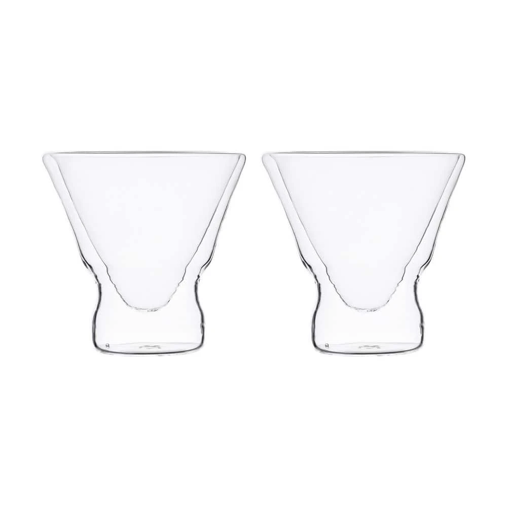Breathe elegance into your barware collection with the Mixology double wall borosilicate glass martini glasses by MasterPRO. The double-wall design creates a floating effect while protecting hands from the contents in the glass. These strong borosilicate martini glasses are designed for withstand high temperature contrast, so you can enjoy your drinks as cold or hot as you’d like.
