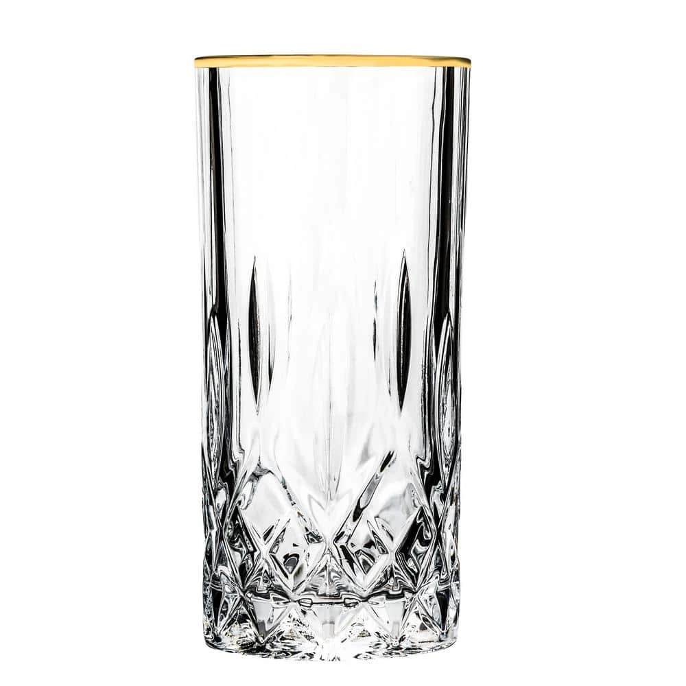 This Highball glass from the Lorren Home Trends Opera Collection has a classic cut design with an ageless look and beauty. Set of 6 is perfect for entertaining and serving that perfect cocktail. Each glass is made in the Tuscan region of Italy and holds 12 ounces. Durable and practical, these glasses feature an elegant gold band trim. Each glass weighs .75 pounds and measures 2.75″ x 2.75″ x 6″. Hand Wash.