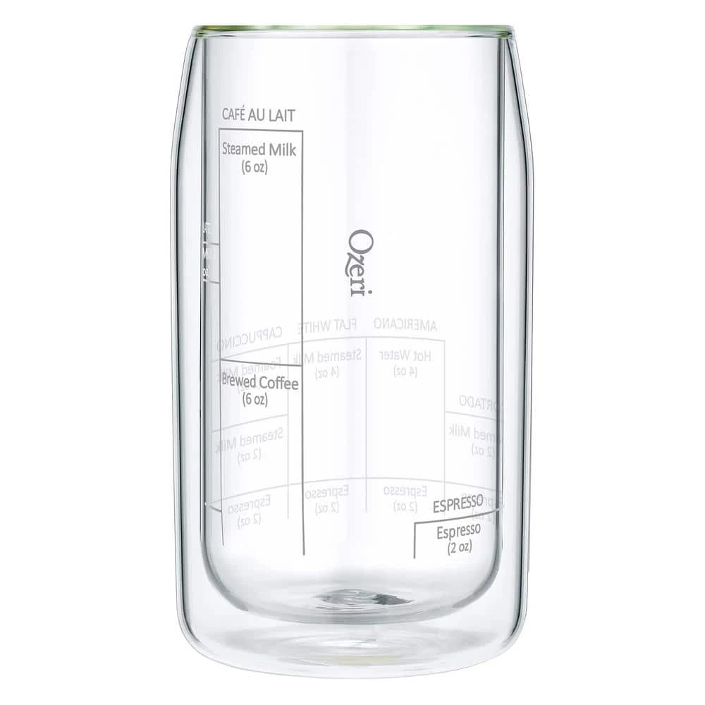Become your own Barista and serve professional coffee drinks with the Ozeri 15 oz Double Wall Barista Coffee Glass, the latest addition to Ozeri’s Moderna Artisan Series of award-winning handcrafted drinkware. The Ozeri Barista Coffee Glass features EZ Measure Lines, which are easy-to-read fill indicators that allow you to flawlessly prepare and serve Espressos, Macchiatos, Cortados, Americanos, Flat Whites, Cappuccinos, Lattes, and Cafe Au Laits. The EZ Measure fill lines show how much espresso, foamed milk, steamed milk, hot water, and brewed coffee to pour, and in the correct order, for that epic looking and tasting Latte, Macchiato, and 6 other barista-quality creations. Each glass is made of durable borosilicate glass, boasting a visually stunning curved design, that preserves drinks at their ideal temperatures. The unique double wall design keeps your hands cool with hot coffee, and free of condensation with chilled coffee drinks. The Ozeri Barista Coffee Glass is completely microwave and freezer safe, and ships in an elegant, printed box with a No-Hassle Warranty. Satisfaction Guaranteed.