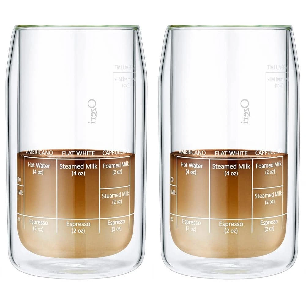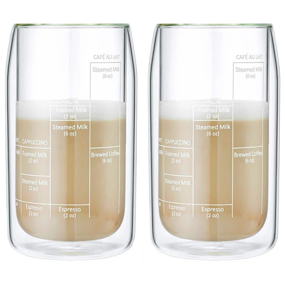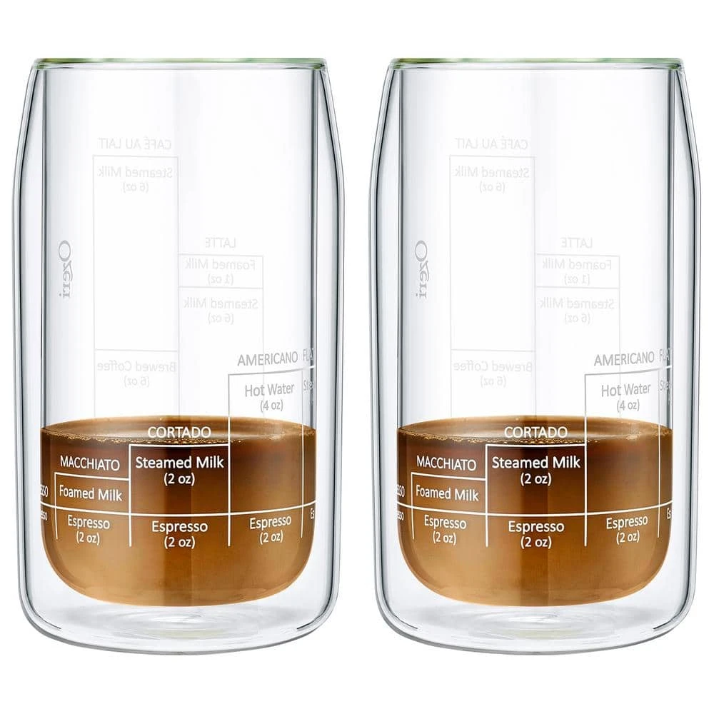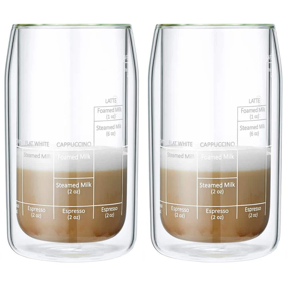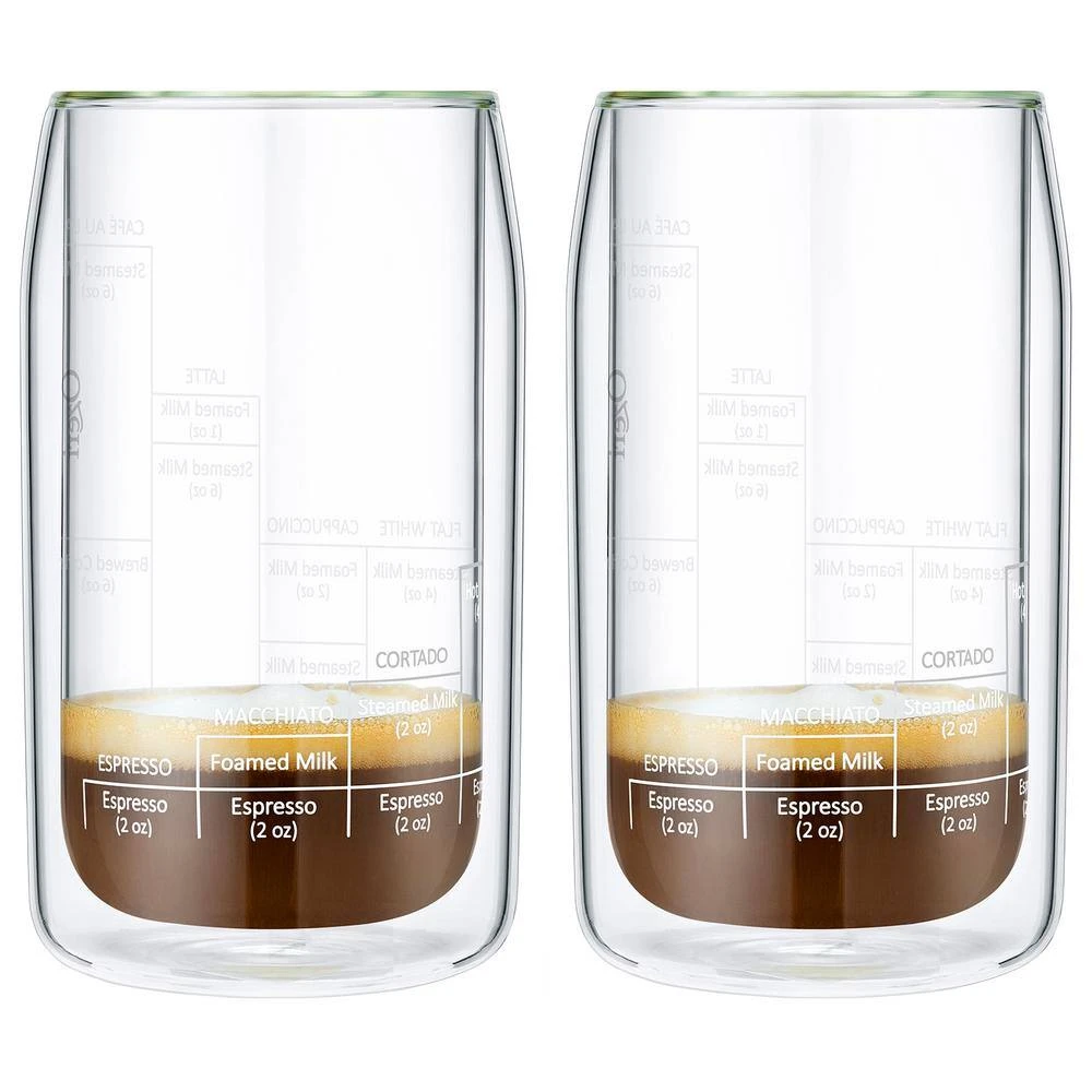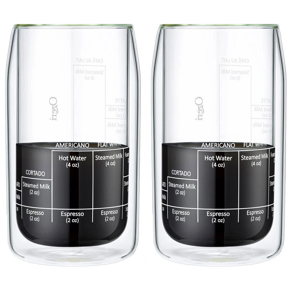 - Set of 2 handmade, double-wall coffee glasses with EZ fill lines for making the perfect barista-quality drinks.