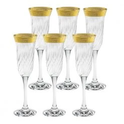 Flutes Melania Collection Gold (Set of 6) Champagne Glasses – Premium Elegance by Lorren Home Trends