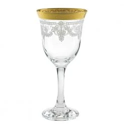 Red Wine Stencil Pattern and Gold Band Wine Glasses (Set of 6) by Lorren Home Trends