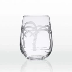Rolf Glass Palm Tree 17 oz. Clear Stemless Wine Tumbler Set of 4 – Elegant & Durable Wine Glasses