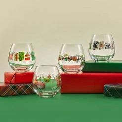 Elisa Red Wine Stemless Glass – Clear with Gold Trim by Abigails