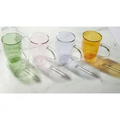 JoyJolt Aroma 13.5 oz Borosilicate Glass Violet Colored Double Wall Coffee Tea Mugs Set (Set of 4)