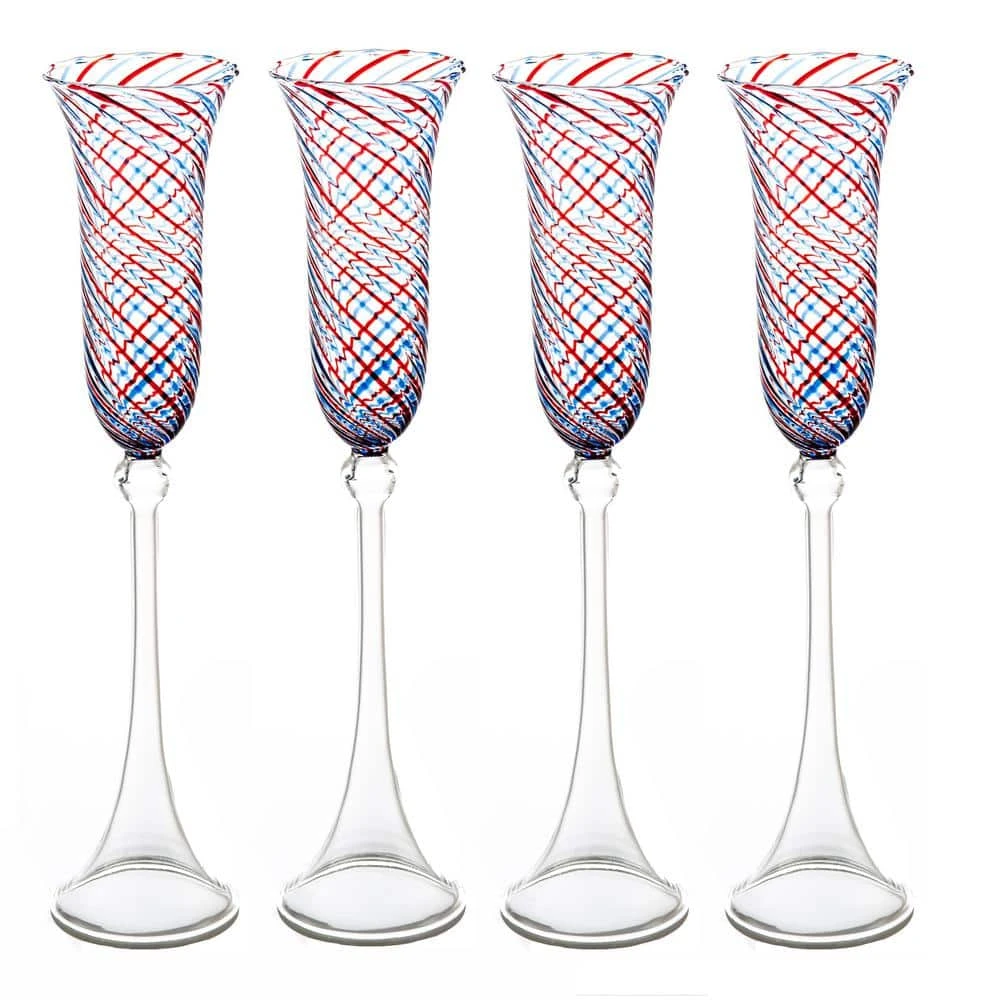 - Package includes a set of four 6 oz champagne flutes. Available for fast and secure shipping, with hassle-free returns. Make your next celebration unforgettable with Abigails’ Red and Blue Swirl Top Champagne Flutes.