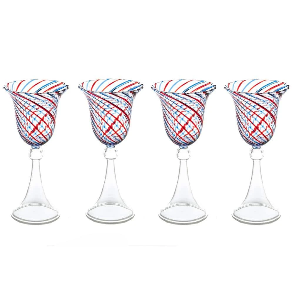Red and Blue Swirl Wine Glass Set of 4 – 6 oz. Elegant Stemware for White Wine by Abigails