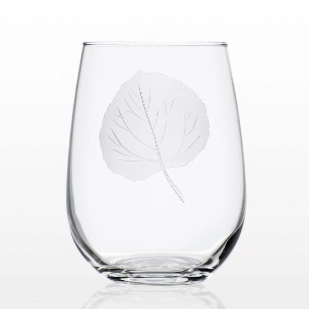Bring the iconic symbol of the great outdoors into your heart and home with this beautifully engraved Aspen leaf glassware collection. Deep cuts make the stem and veins while a light sand-etch overlays the cut, making for a truly unique design. Makes a wonderful addition to your home glassware collection.
