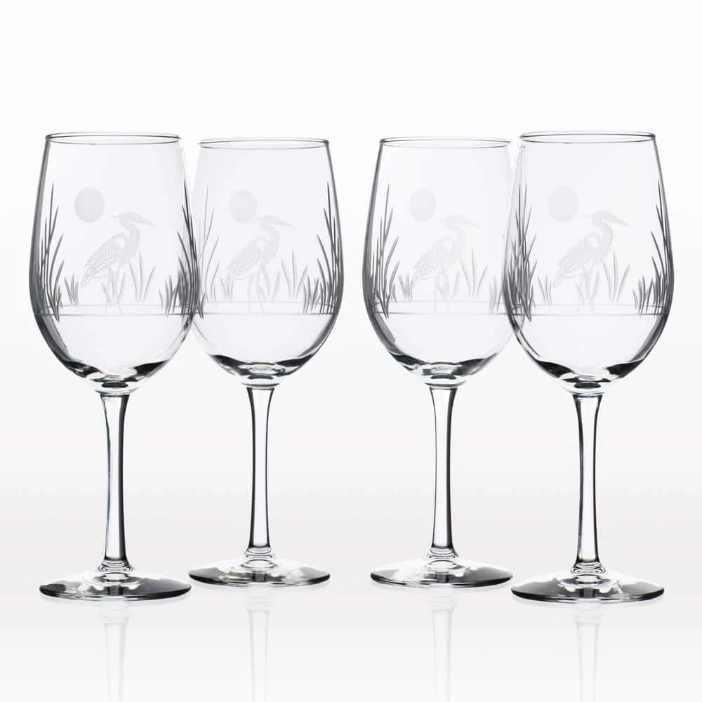 Long revered as the symbol of prosperity, a single Heron gracefully adorns a picturesque landscape. This bestselling Rolf Glass design is deeply sand-etched and diamond-wheel engraved. Pristine clear glass and elegant lines make this design an instant classic. Sold in sets of four they also make fantastic gifts.