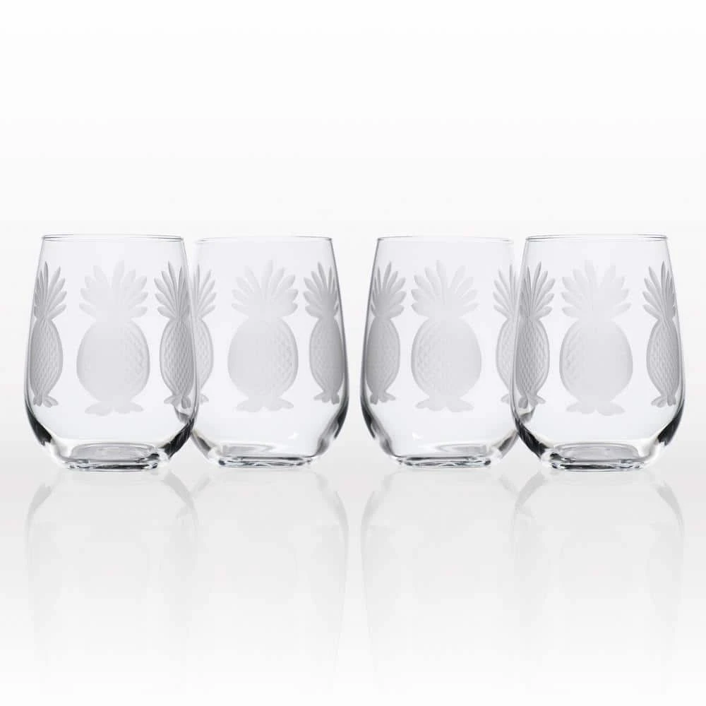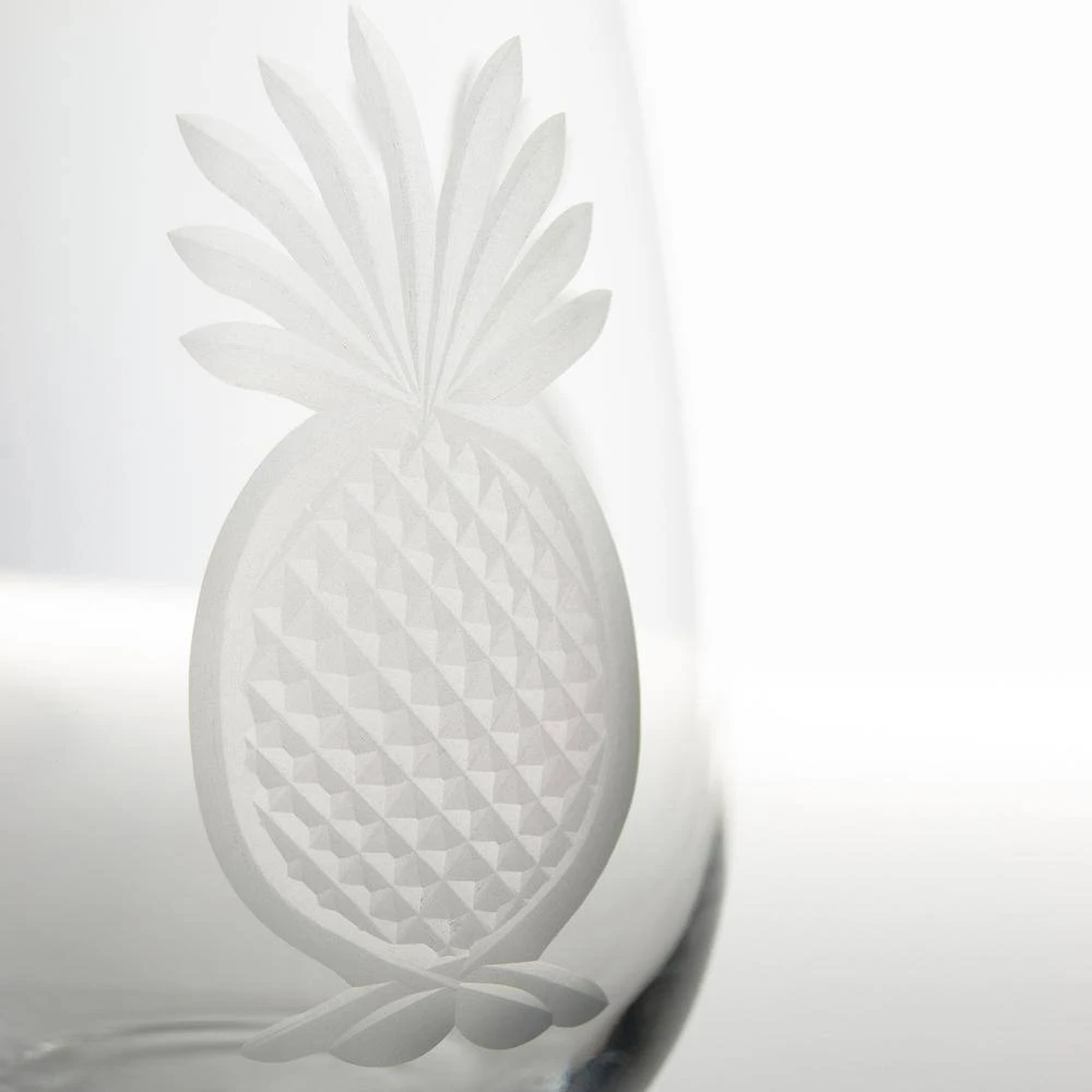 Our pineapple decorated stemless red wine tumbler provides a fresh take on the age-old symbol for hospitality. Our 17 oz. stemless wine allows optimum space for your wine to breathe. These pieces make for ideal housewarming gifts, or an elegant way to entertain in your own home.