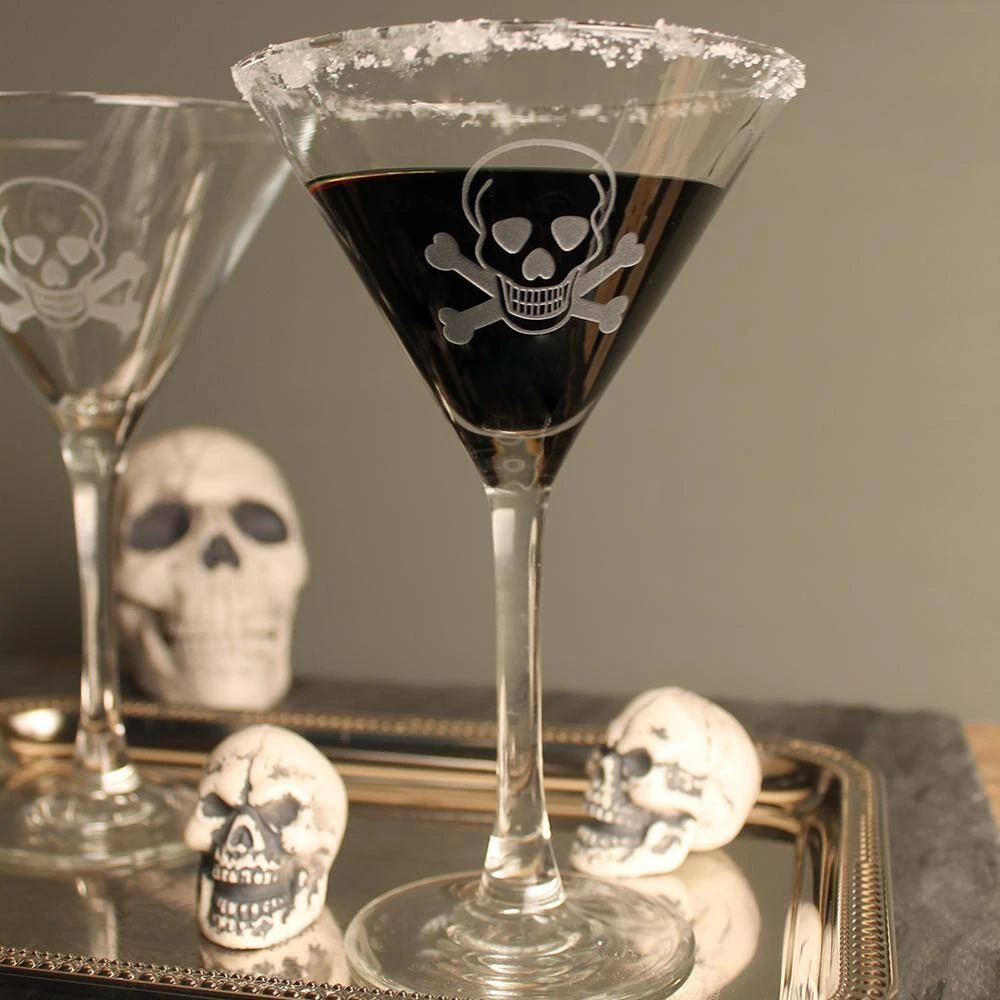 The skull and cross bones say beware, but aren’t we all drawn to a bit of danger. Whether you fancy yourself a pirate or a captain of industry, nothing makes a statement like Rolf Glass Skull and Cross Bones glassware. Stunningly clear glass is deeply sand-etched to produce a subtle yet sophisticated design. These glasses are sure to be a treasure to have in any home.