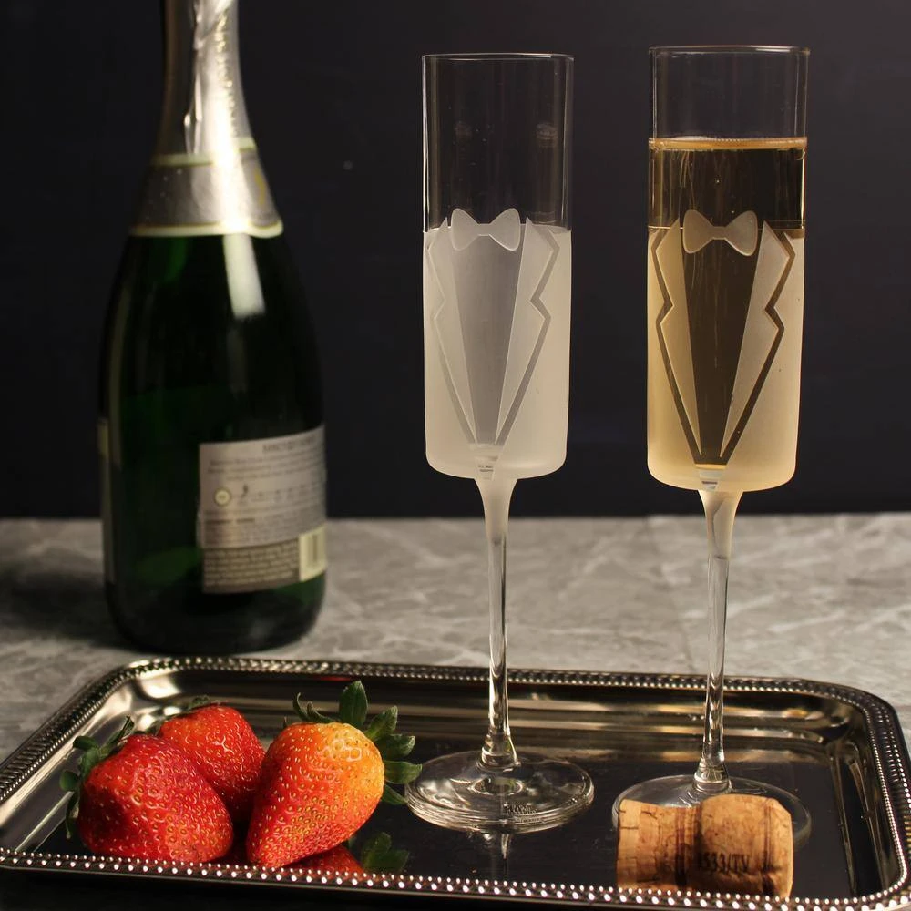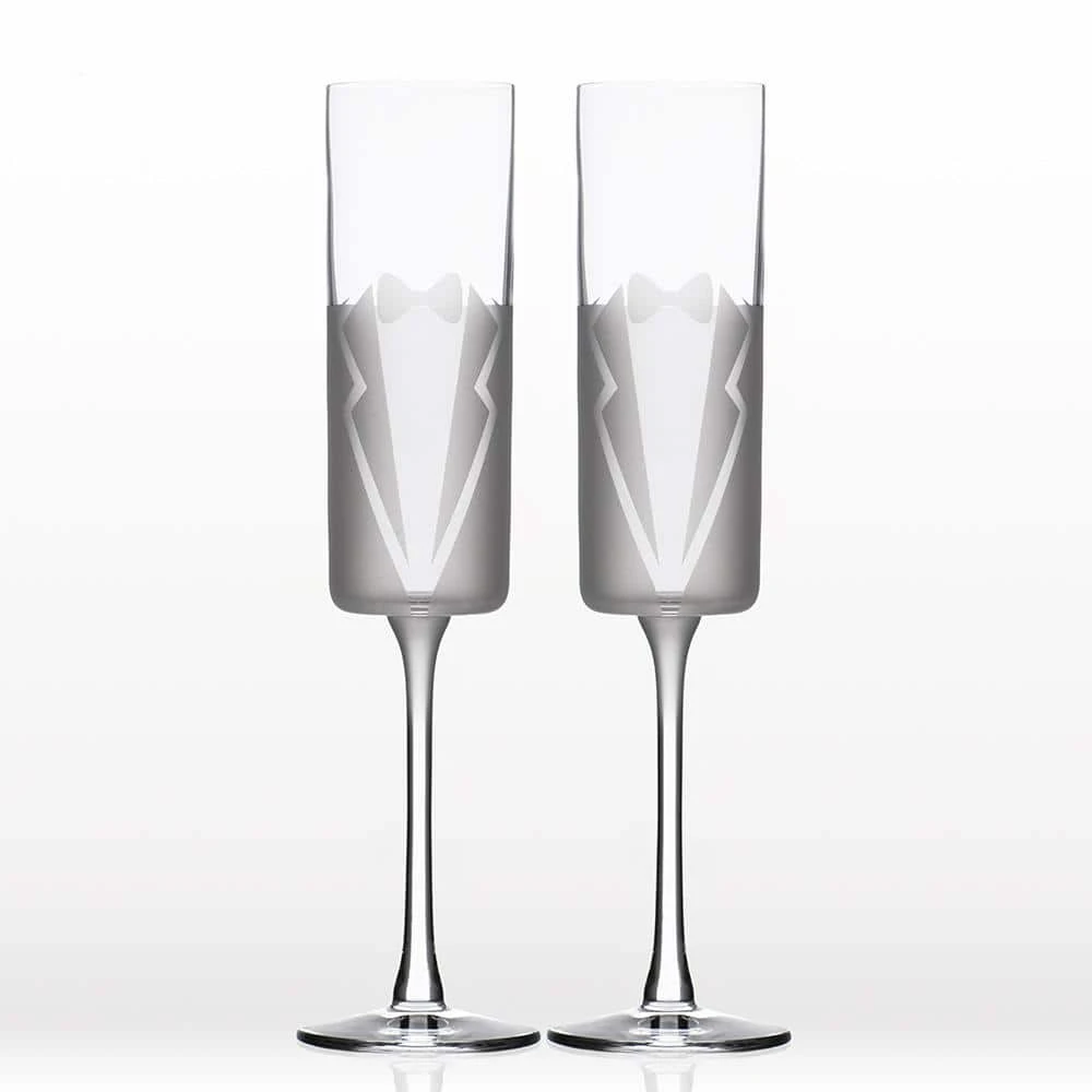 - Elevate your toasting moments with the Rolf Glass Wedding Cheers Formal Tuxedo Champagne Flutes. This set of two 5.75 oz. flutes combines timeless elegance with modern design, perfect for weddings, anniversaries, and other special celebrations.