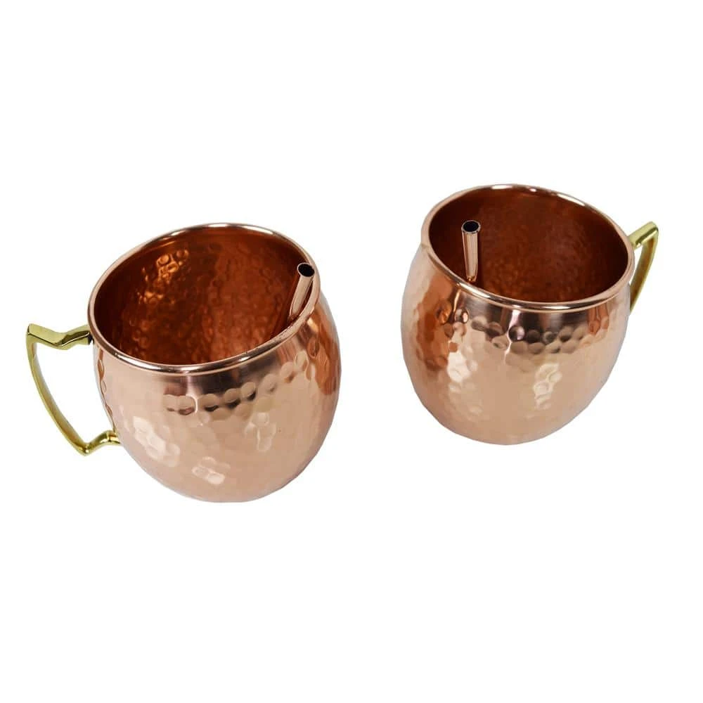 - Dimensions for the solid round pair of 100% copper mule mug cups with 2 copper straws 17 oz. smooth hammered handcrafted finish are: 5 in. L x 3.5 in. W x 4 in. H