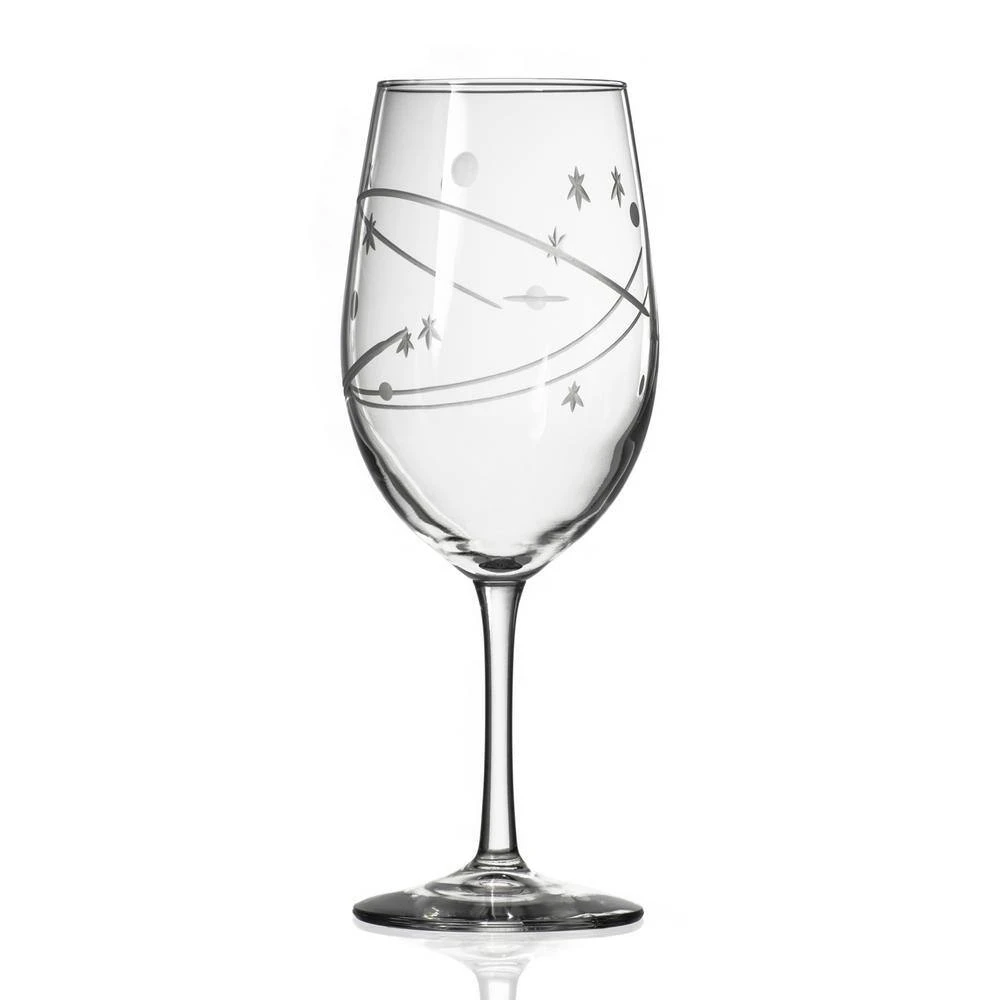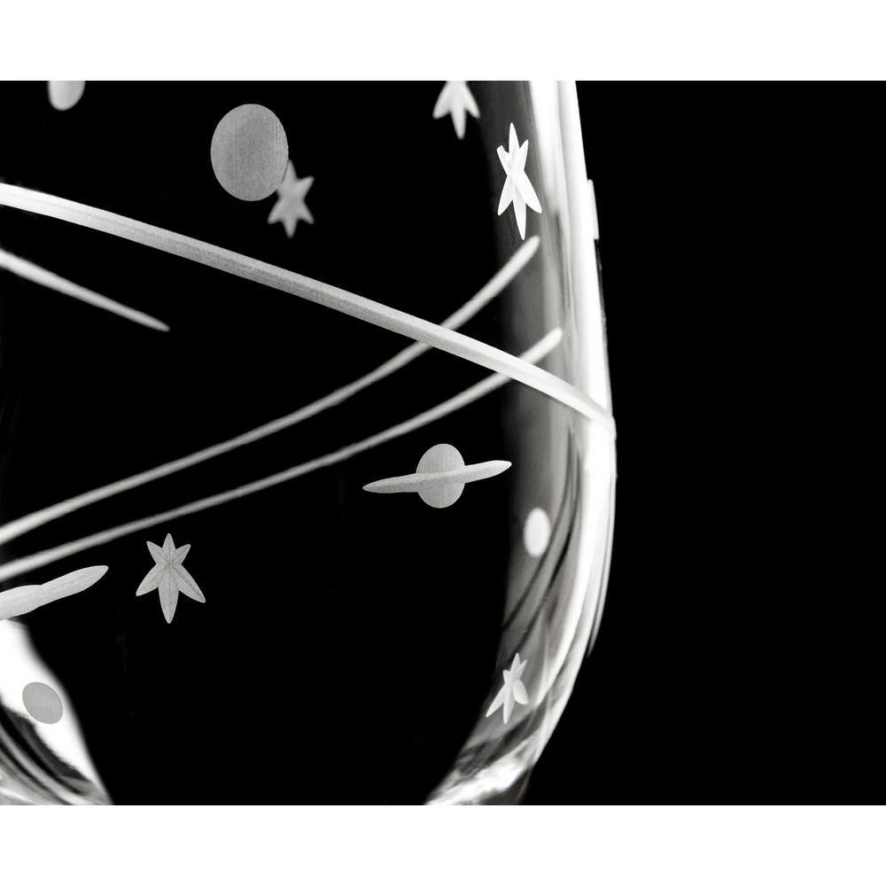 The Space glassware collection is a far-out retro design by Rolf Glass using minimalist geometric shapes inspired by the Mid-Century Modern style. The cosmic scene with comets, stars, and planets created with diamond-wheel cuts evokes visions of the MCM masters like George Nelson, Charles and Ray Eames, and Isamu Noguchi.The Space 18oz all-purpose wine glass is a great match for your favorite red or white wine.