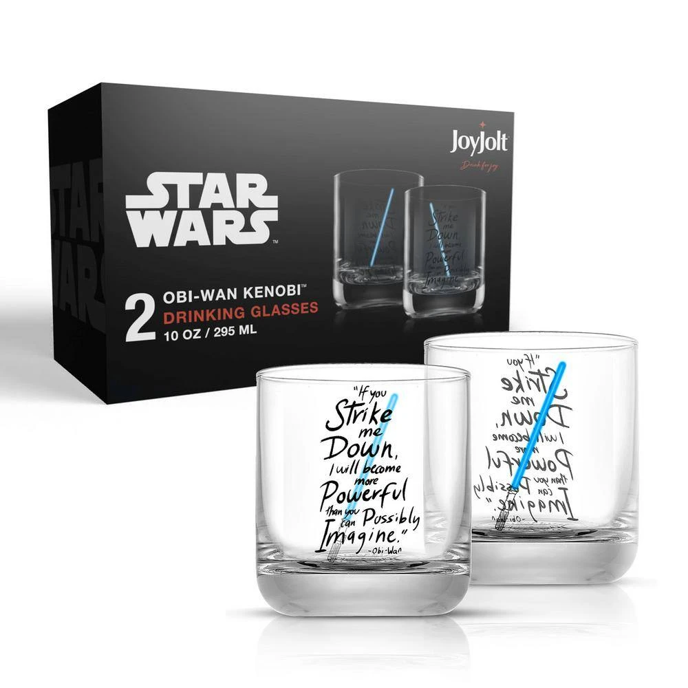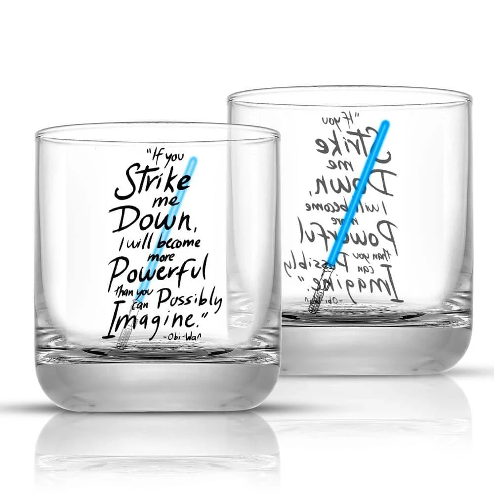 MAY THE FORCE BE WITH YOU with these drinking glasses. These double sided designed glasses featuring your favorite Star Wars character’s commemorating Darth Vader, Obi-Wan Kenobi, and Luke Skywalker while featuring some of their most memorable quotes These are perfect for everyday use or entertaining friends & family. Each set comes in a set of 2 and is made of premium quality, crystal clear, lead-free glass. These glasses have a unique design that is a perfect addition to your home and the upscale packaging makes this a perfect gift idea for weddings, anniversaries, holiday parties and any other festive occasion.