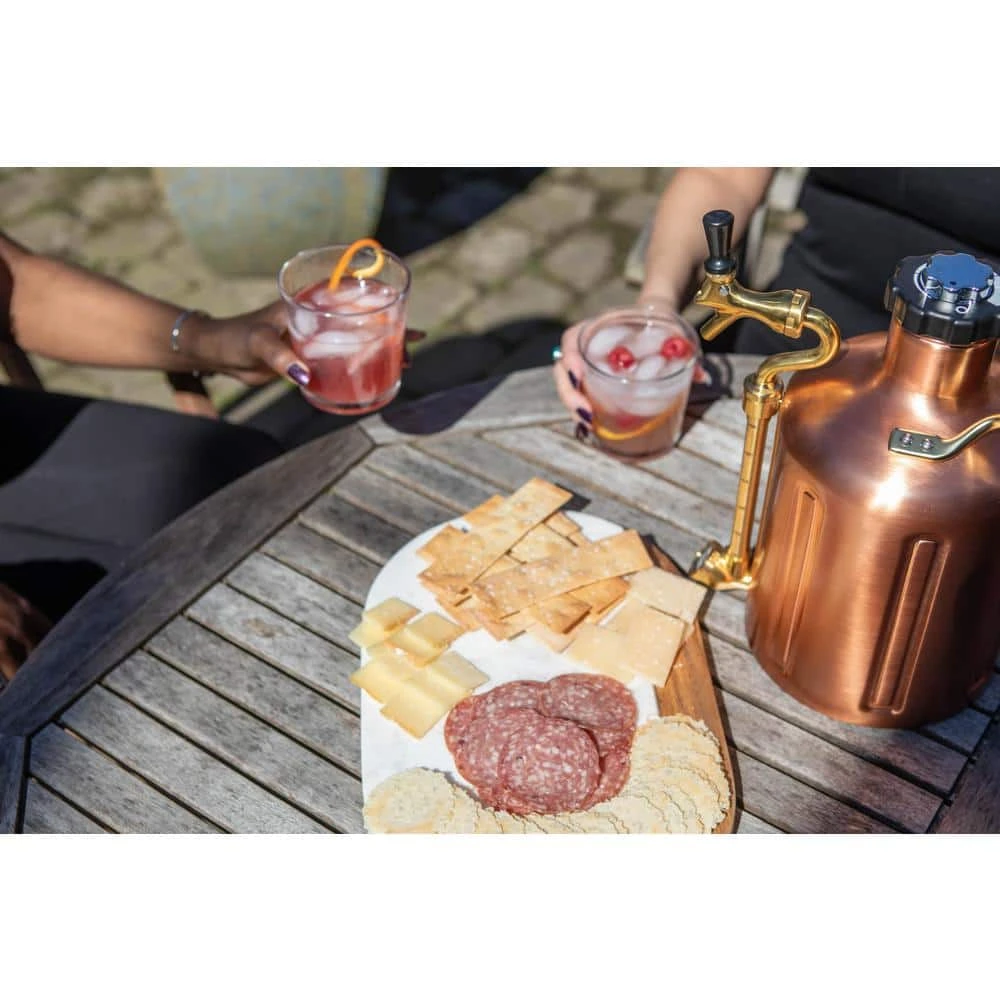 64 oz. vacuum insulated pressurized personal keg that keeps beer and other beverages carbonated and fresh for up to 2-weeks. The tap assembly includes a pressure gauge and sight glass, VPR cap technology, carrying handle.ย The uKeg is portable and will keep your beer cold for 7-9 hours. Durable copper plated finish. The uKeg 64-pressurized growler available in a bright copper finish for a true, old-fashioned brewery look. The ultimate drinking vessel for every occasion and your favorite libation.